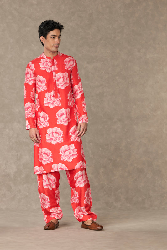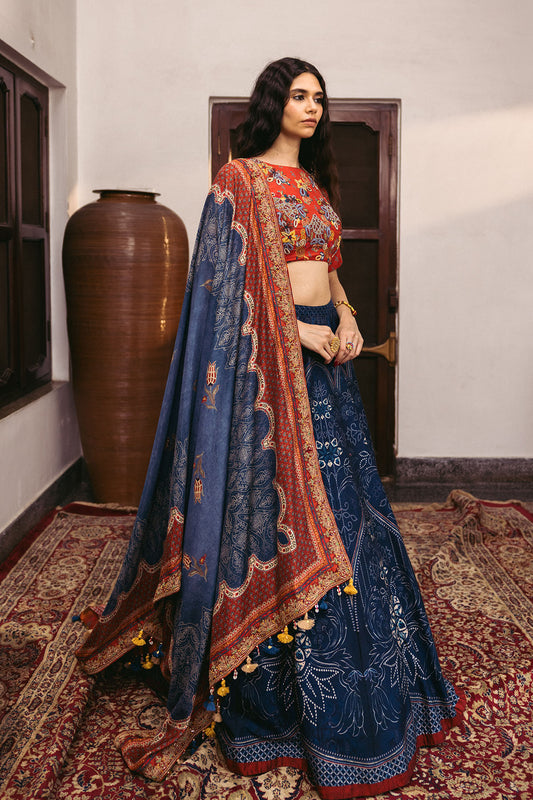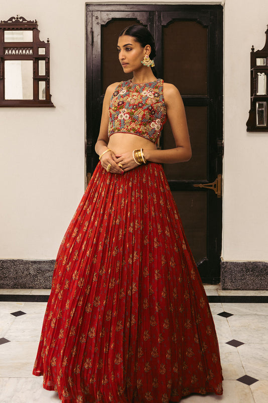 RED EMBROIDERED BLOUSE WITH RED EMBROIDERED PANT AND CHOKER DUPATTA