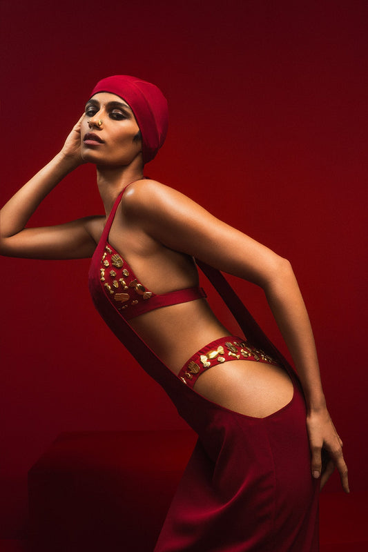 The Red IDGAF Dress With The Ruby Bra and Whip