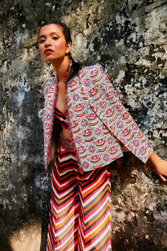 Shahar Stripe Cropped Blouson With Fisherwoman Appliques
