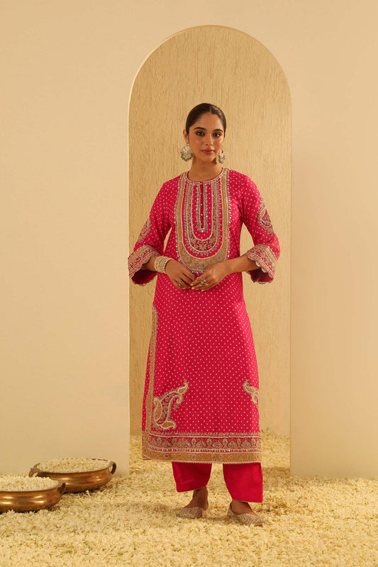 Aamish - Hotpink Long A-line Kurta with Palazzo
