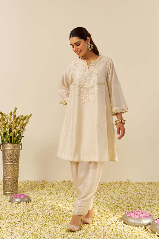 Ziana - Daisy Ivory Short Straight Kurta with Salwar and Dupatta