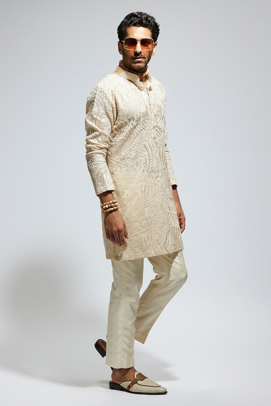 Ivory Threadwork Embellished Bundi
