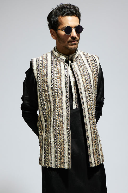 Zentangle Embellished Bundi Paired with Black Kurta and Pants