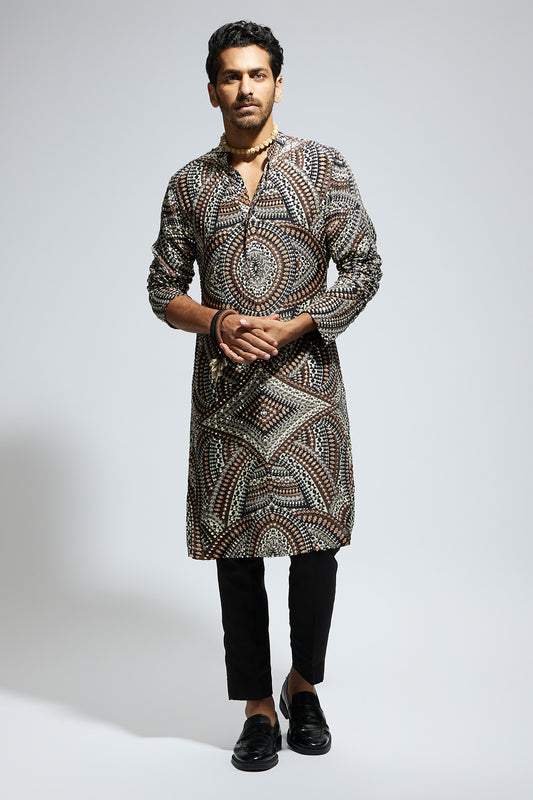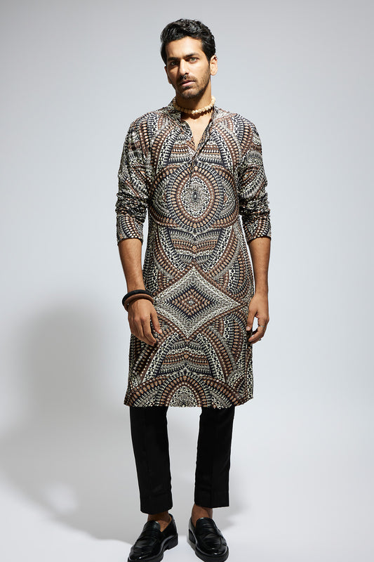 Zentangle Heavily Highlighted Long Kurta with Pants