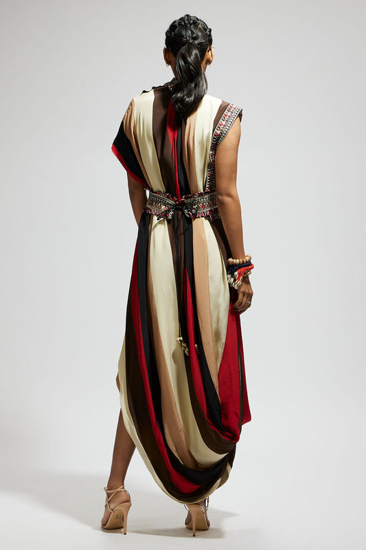 Samsara Stripe Print Cowl Dress Teamed with A Belt