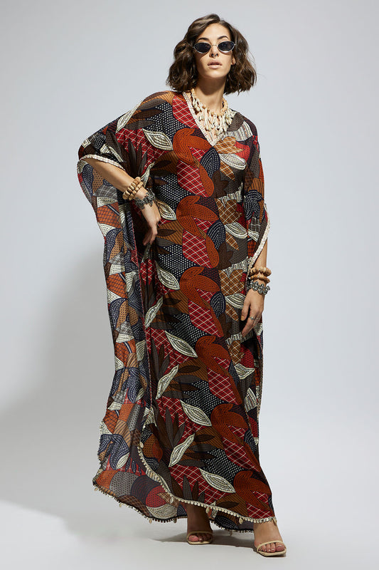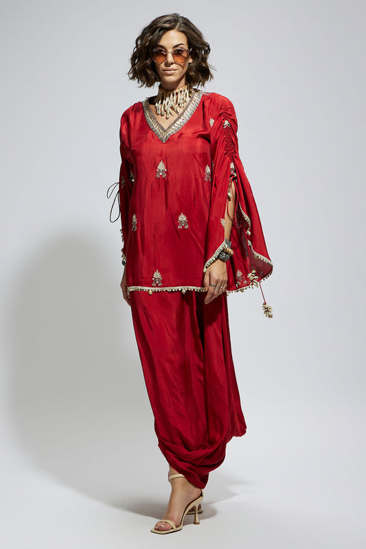 Terracotta Embellished Cape Top Paired with Terracotta Drape Skirt