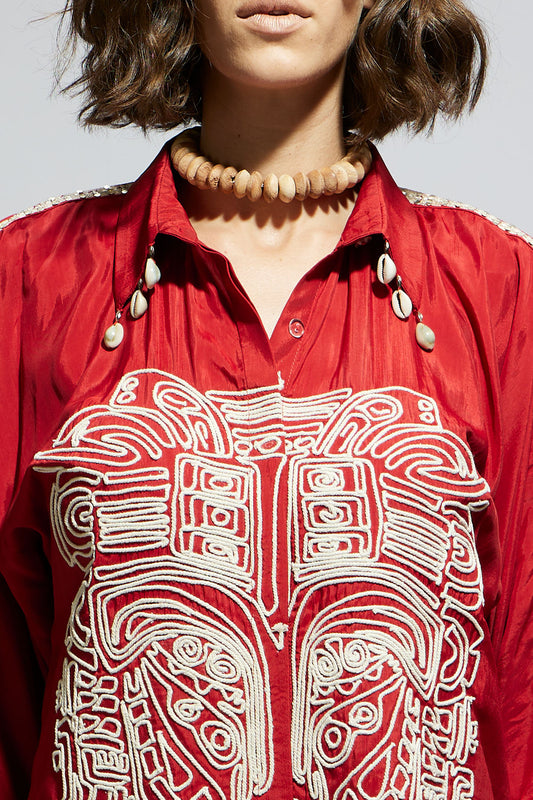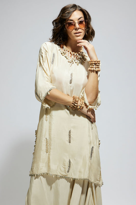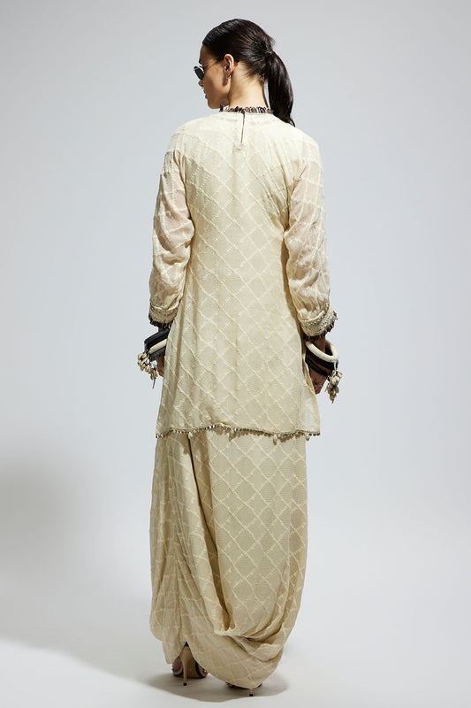 Ivory Aztec Yoke Embroidered Tunic Paired with Drape Skirt