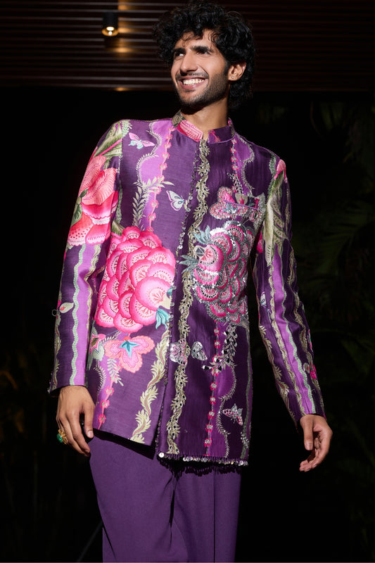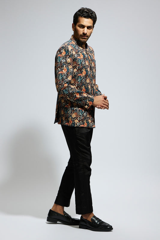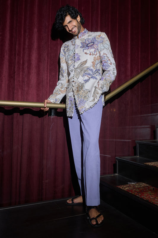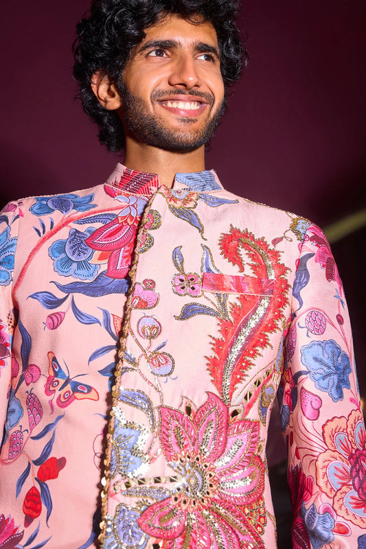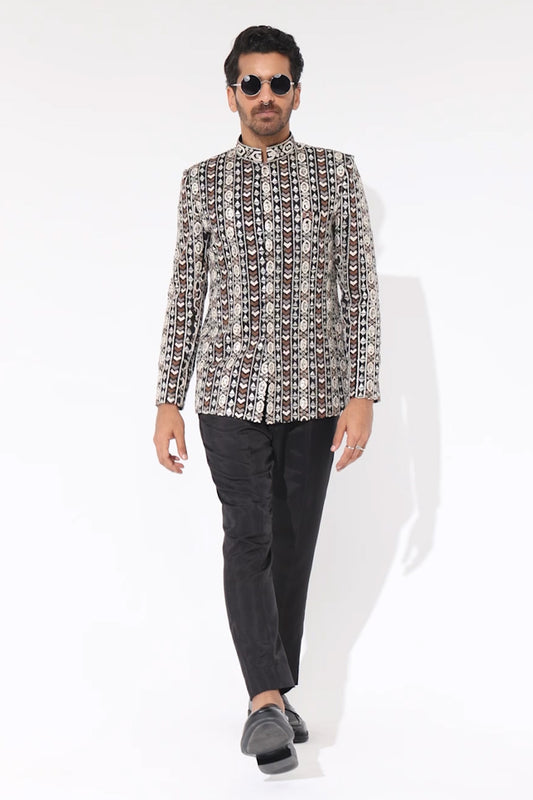 Orange Jaal Embellished Bandhgala Paired With Jaal Kurta And Pants
