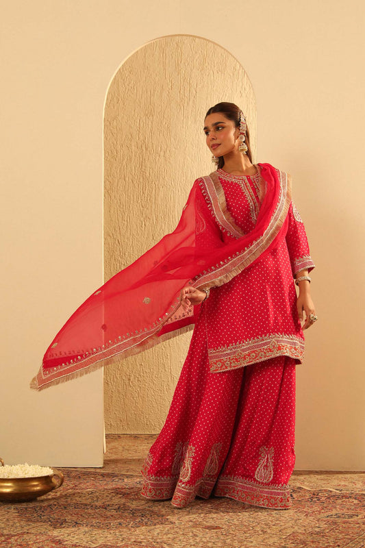 Mishika - Deep Red Kurta with Sharara and Dupatta