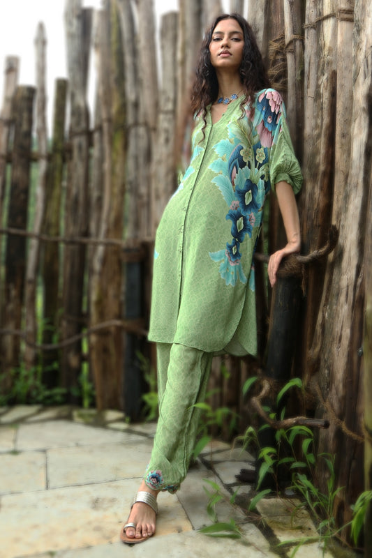 Sage Green Crepe Hand Embroidered Co-Ord Set