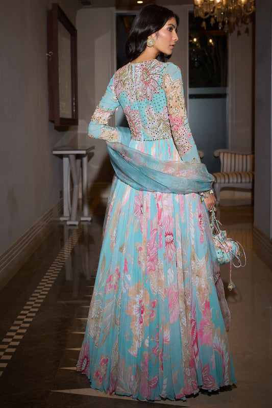 BLUE EMBROIDERED JACKET SET WITH BLUE PANTS