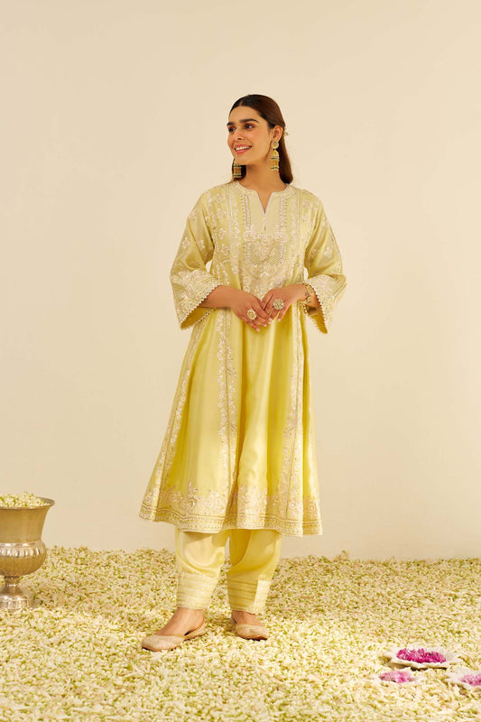 LIME YELLOW GRID PRINT & HIGHLIGHTED KURTI SET