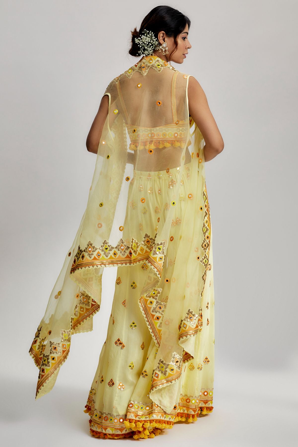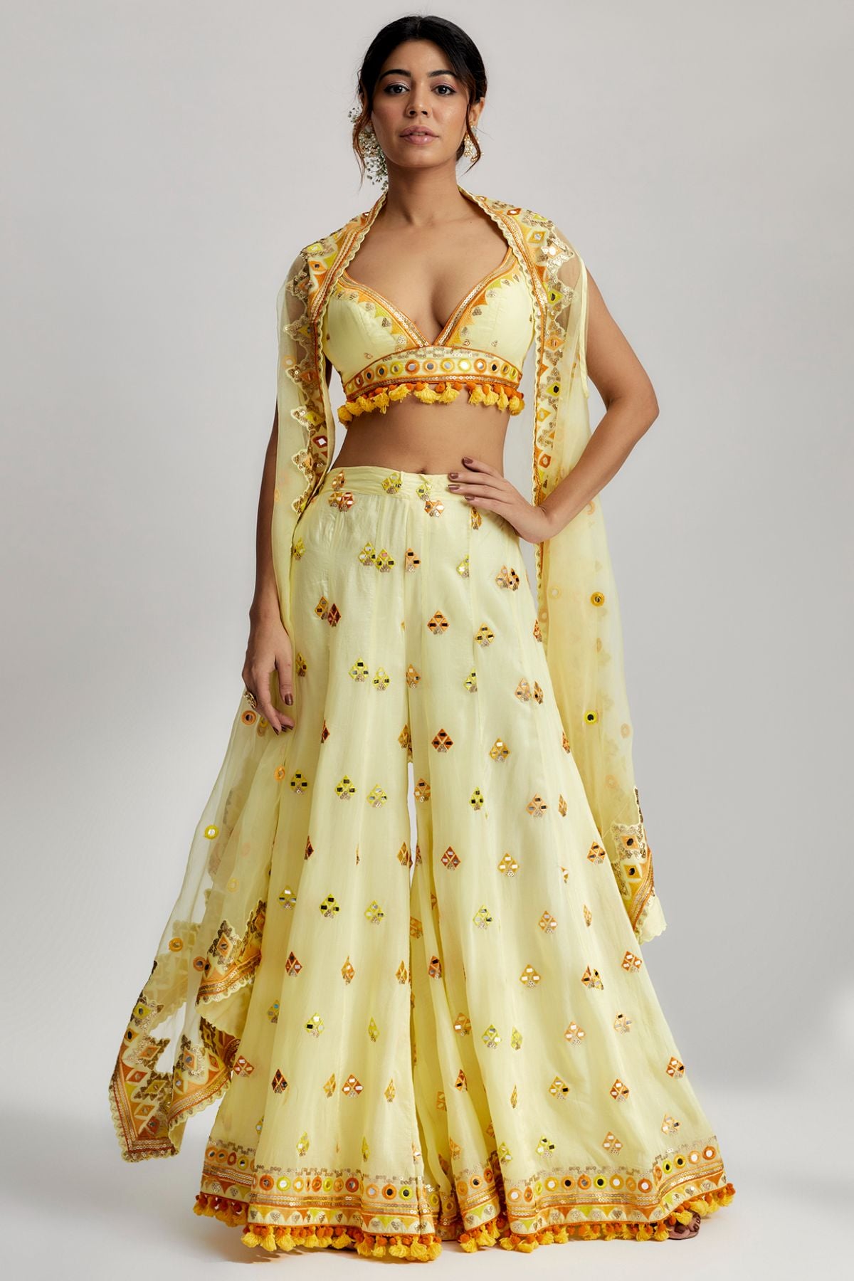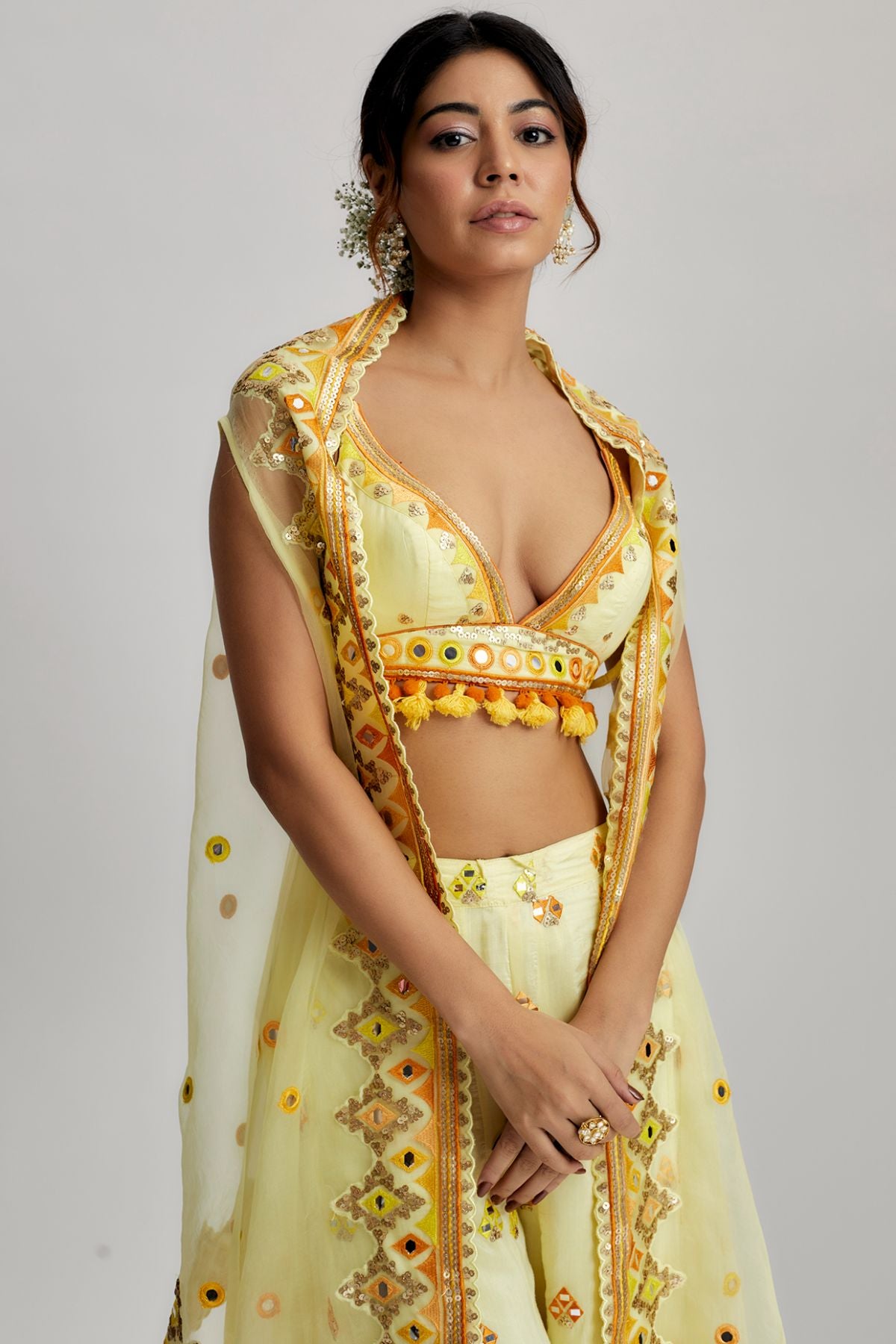 Fabric: Pant - Viscose, Blouse - Viscose, Cape - Organza