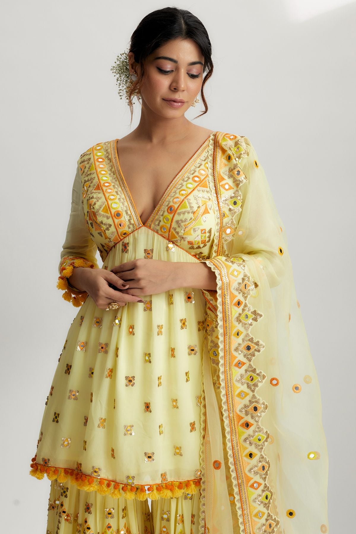 Fabric: Peplum - Georgette, Sharara - Georgette, Dupatta - Organza