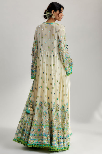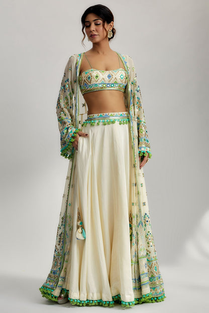 With its impeccable craftsmanship and attention to detail, the Ridham Jacket set with Victorian Skirt is a statement piece that will make you stand out in any crowd. Whether you're attending a wedding, a festive celebration, or a special event, this outfit will make you feel like a true fashion icon. Embrace the beauty of tradition and let this ensemble showcase your unique sense of style.
