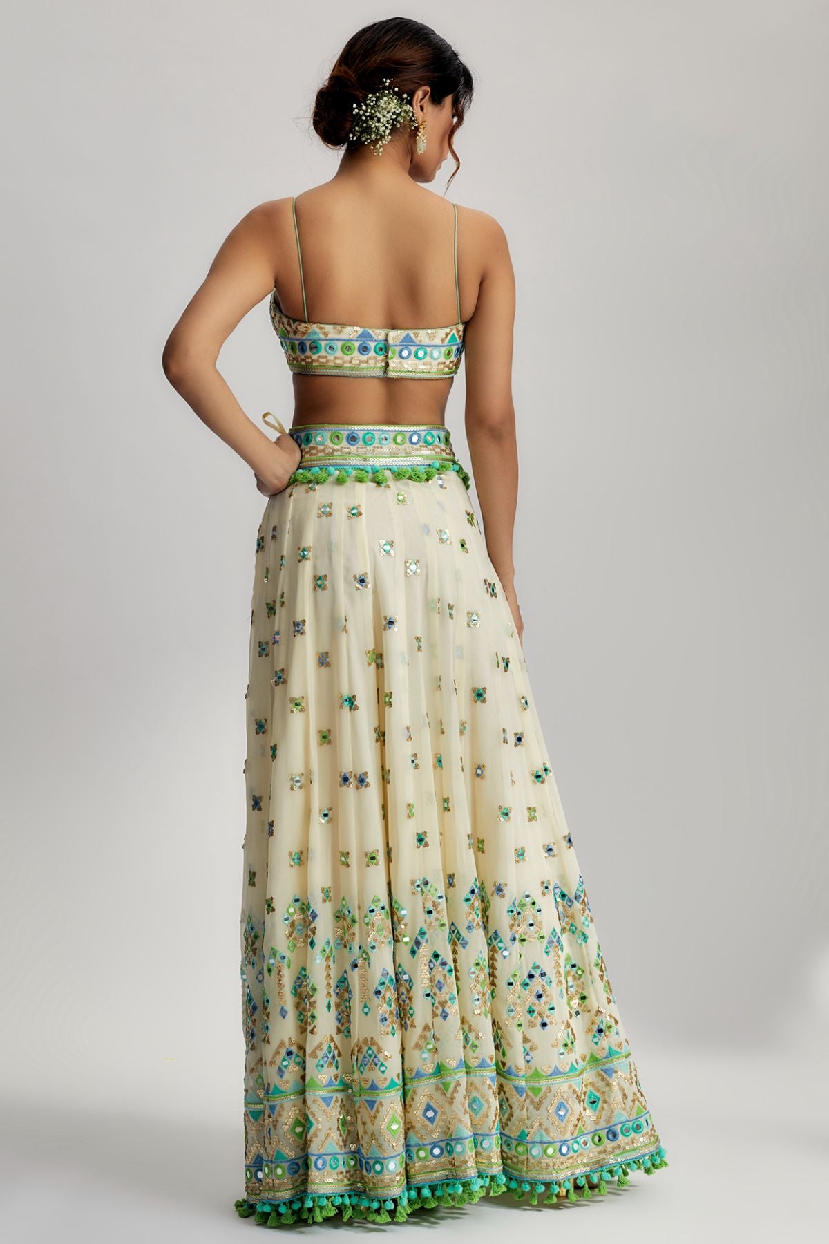 The The Imran Cape Set With Flared Pants with mirror work, pompoms, tassels, and intricate hand and machine embroidery is a true masterpiece that celebrates artistry and craftsmanship. It is the perfect choice for festive occasions, weddings, or any special event where you want to make a lasting impression.