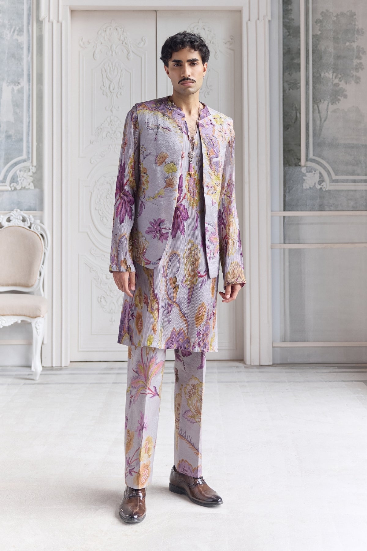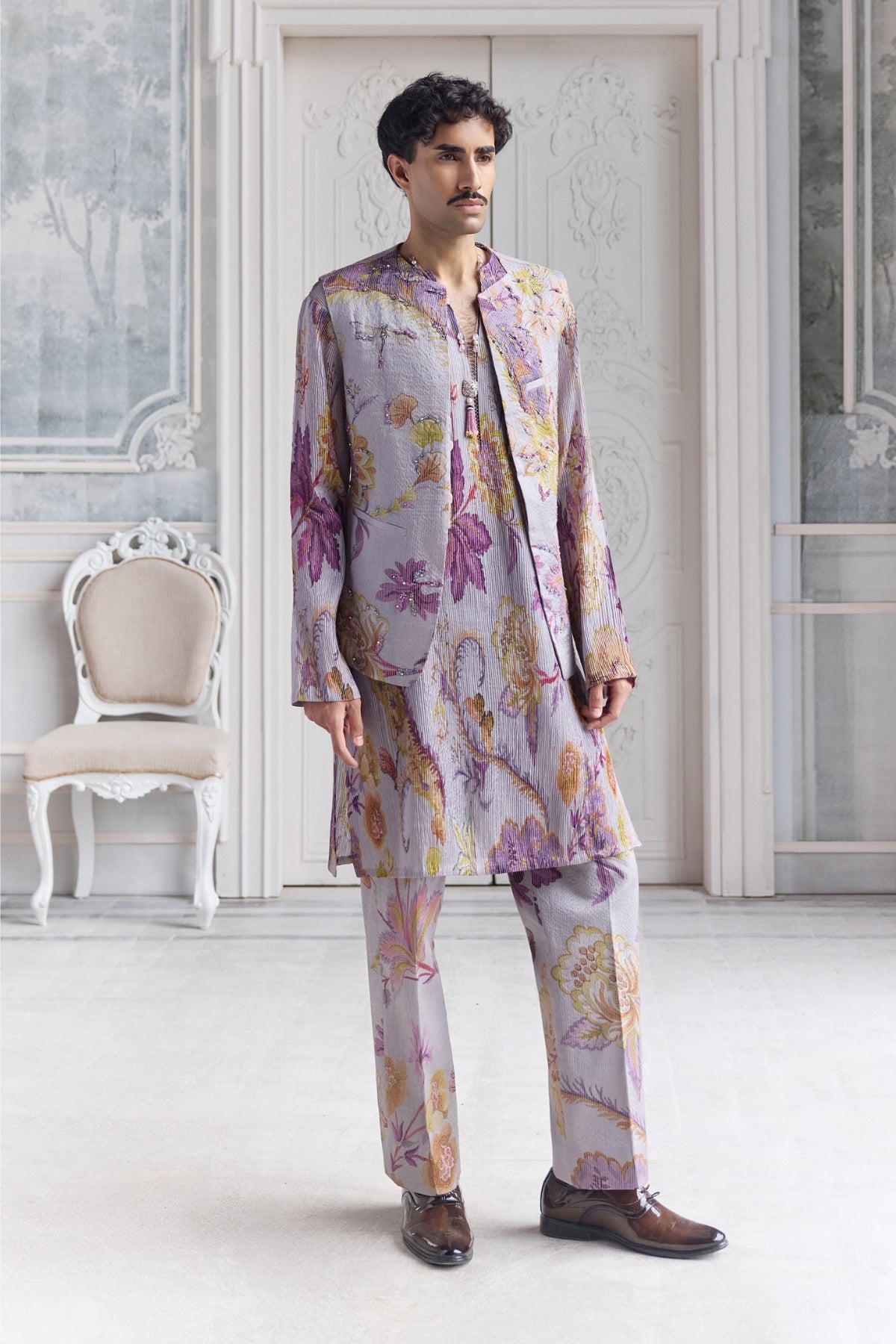 Quilted Hand Embroidered Bundi Paired With Mid Length Kurta And Pants