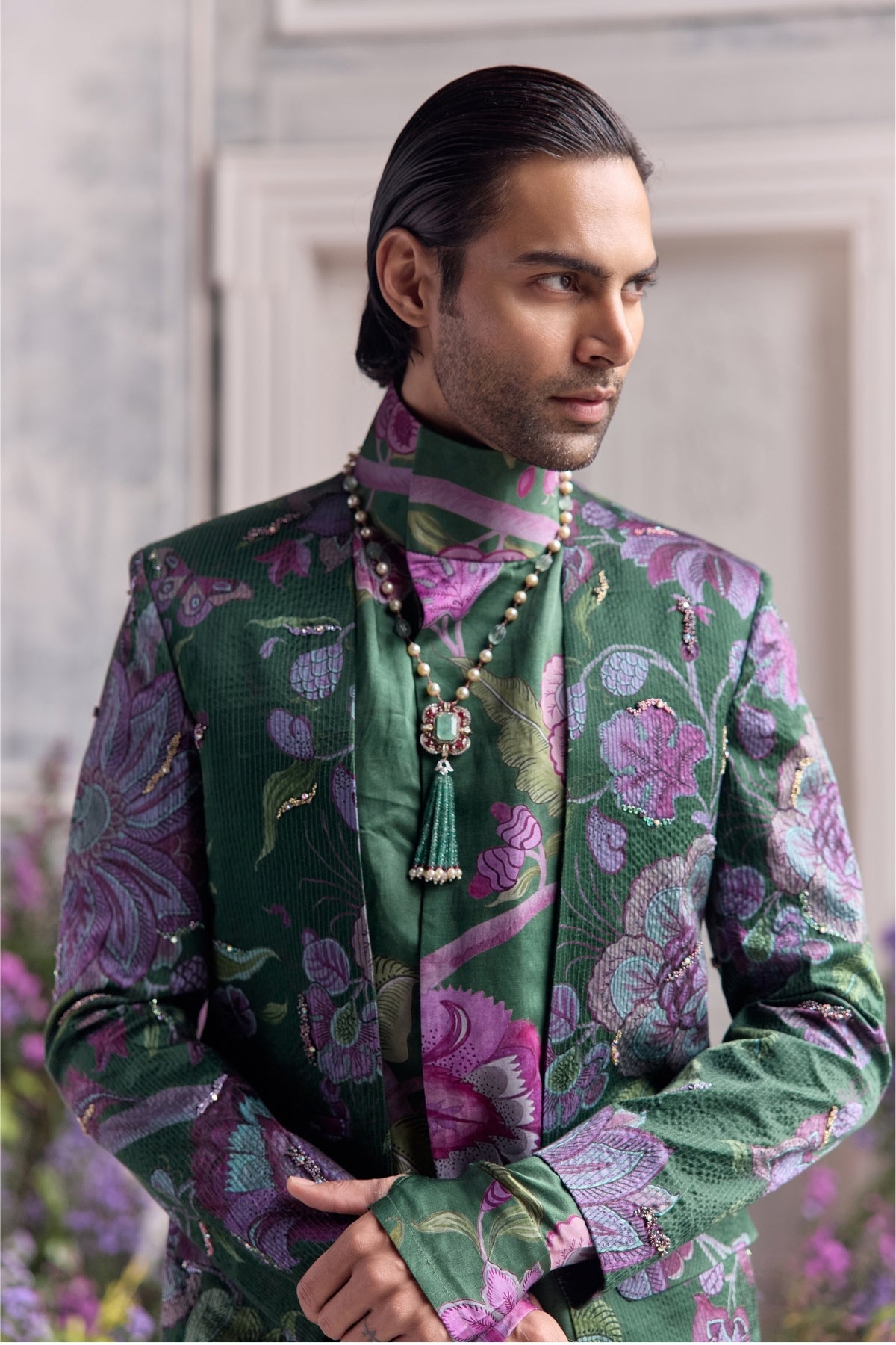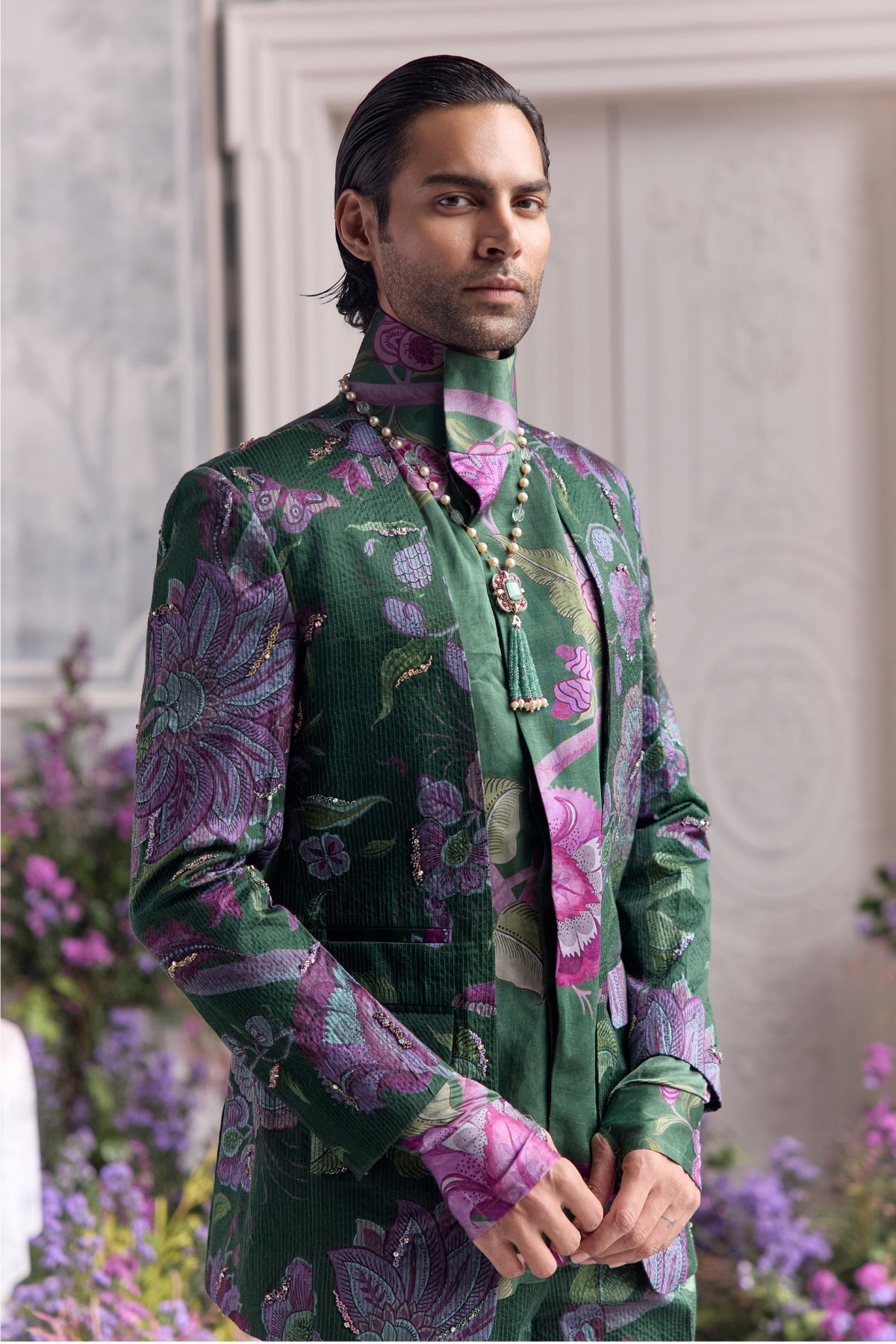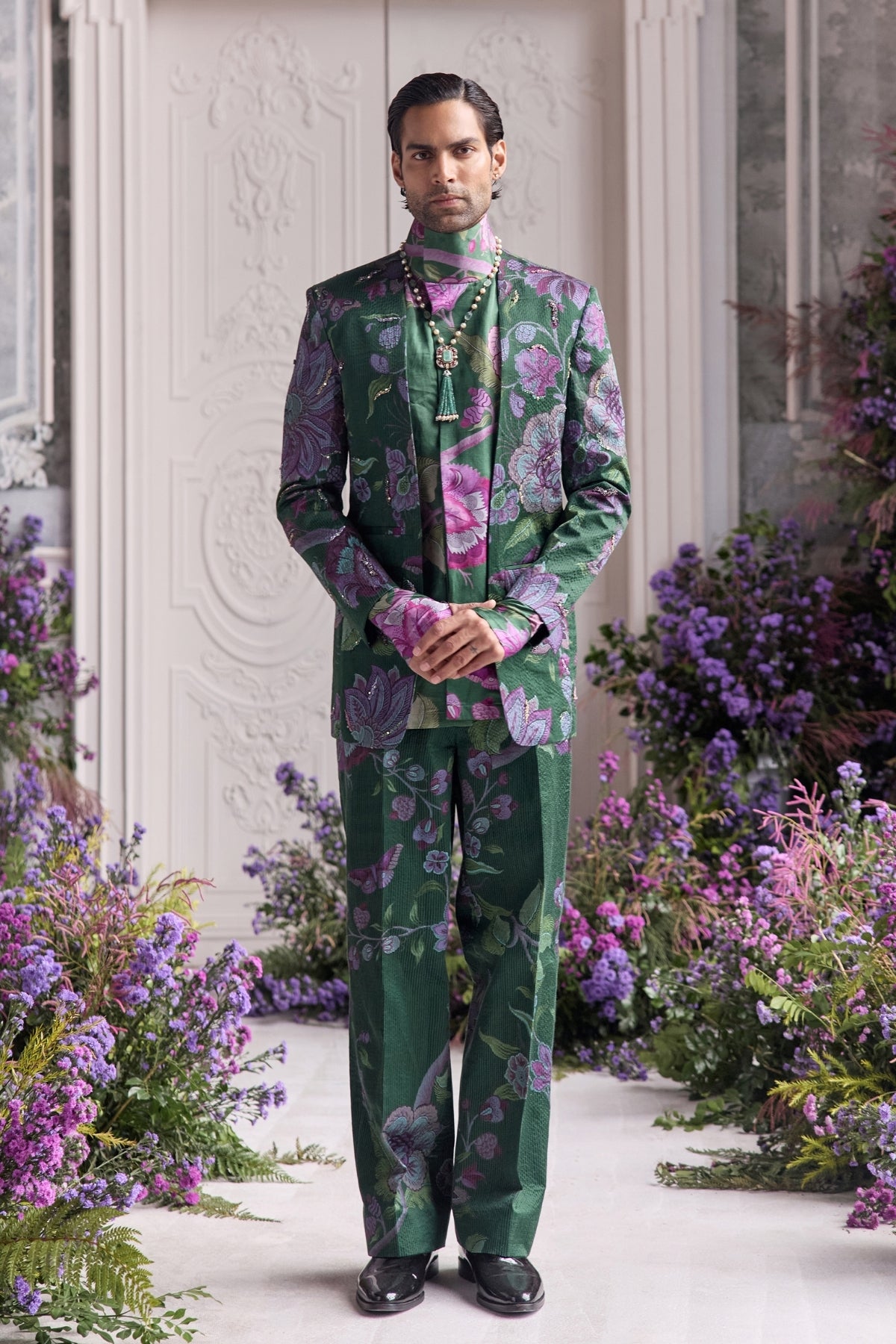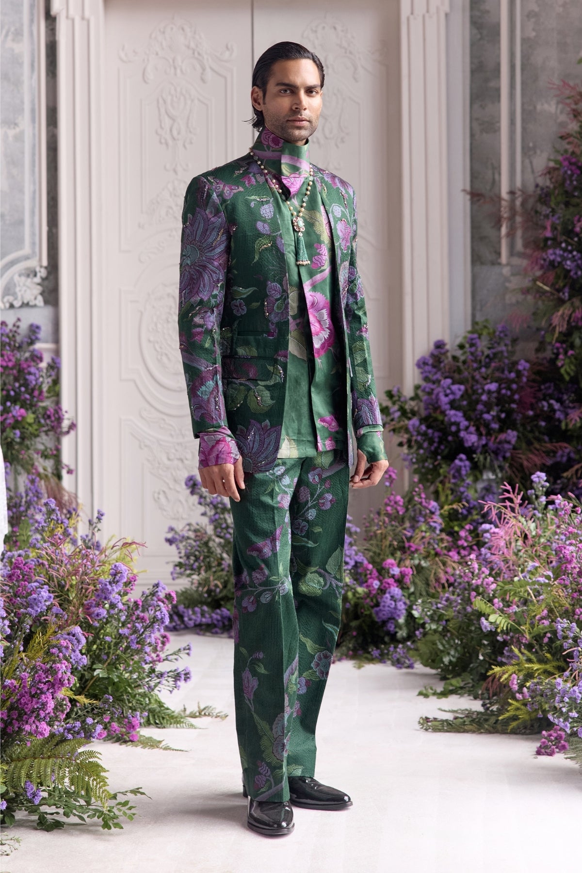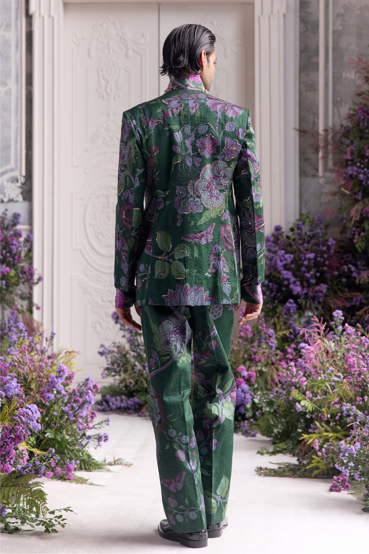 Hand Embroidered Blazer Paired With High Neck Shirt And Trouser