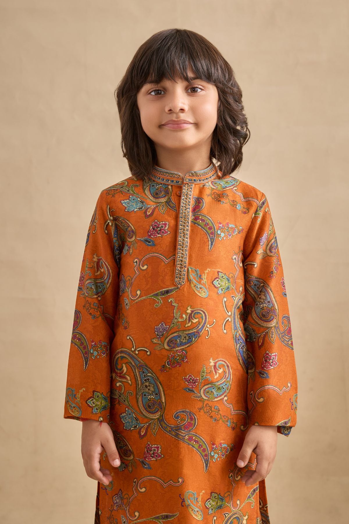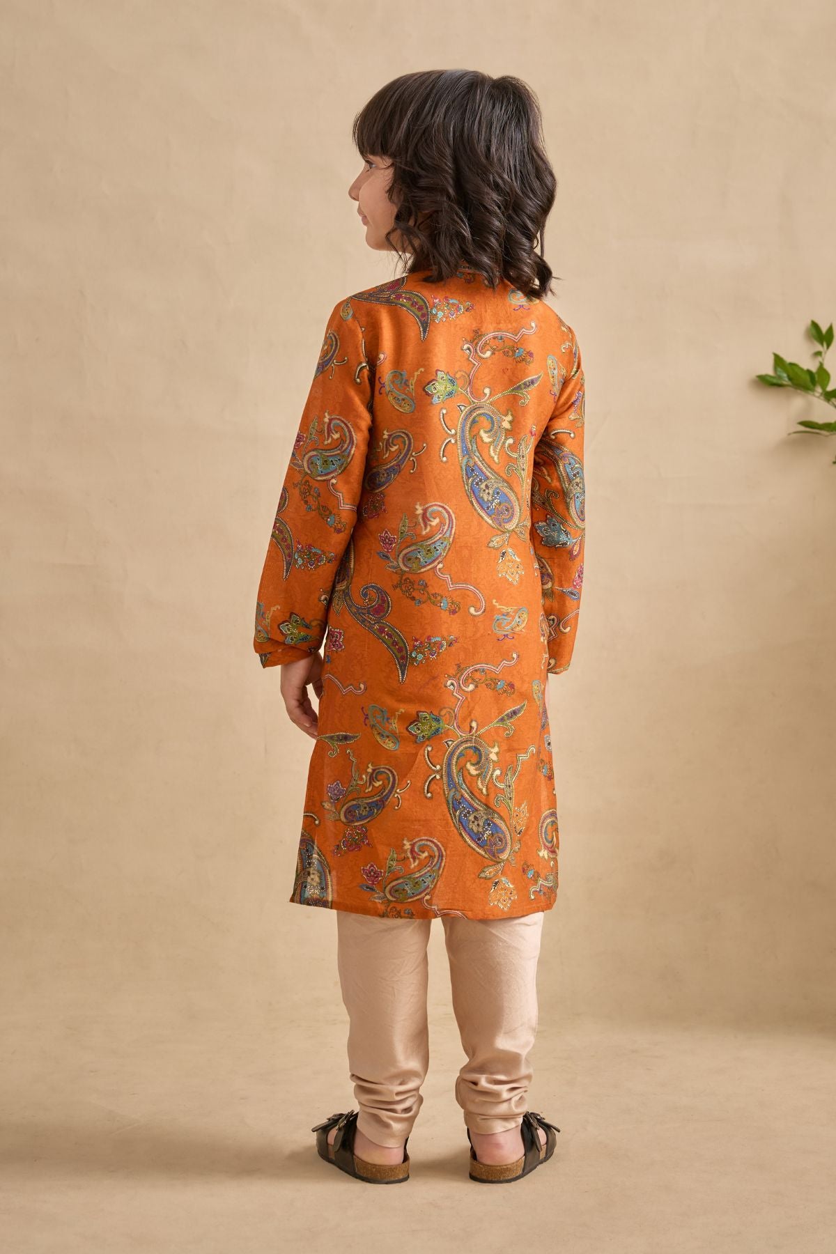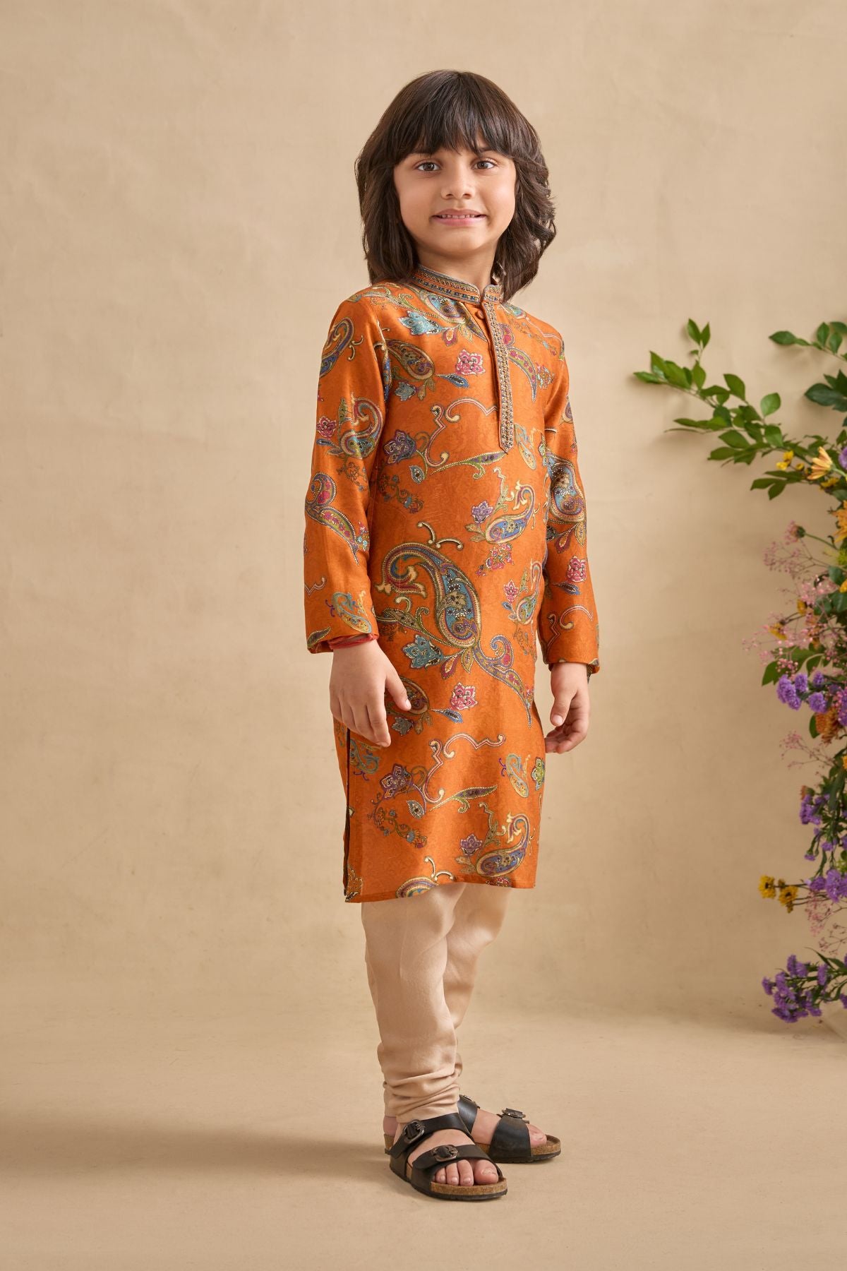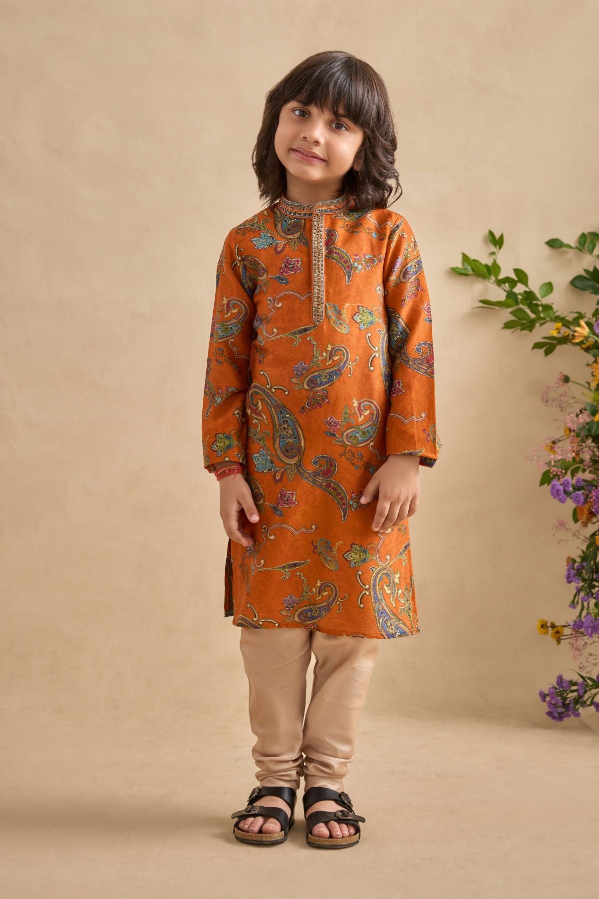 Introduce A Splash Of Style To Festivities With Our Adhyan Kurta Set All-over Chints And Paisley Print With Embroidery Detailing On The Neck And Placket. It Is Paired With A Contrast Colour Churidaar.