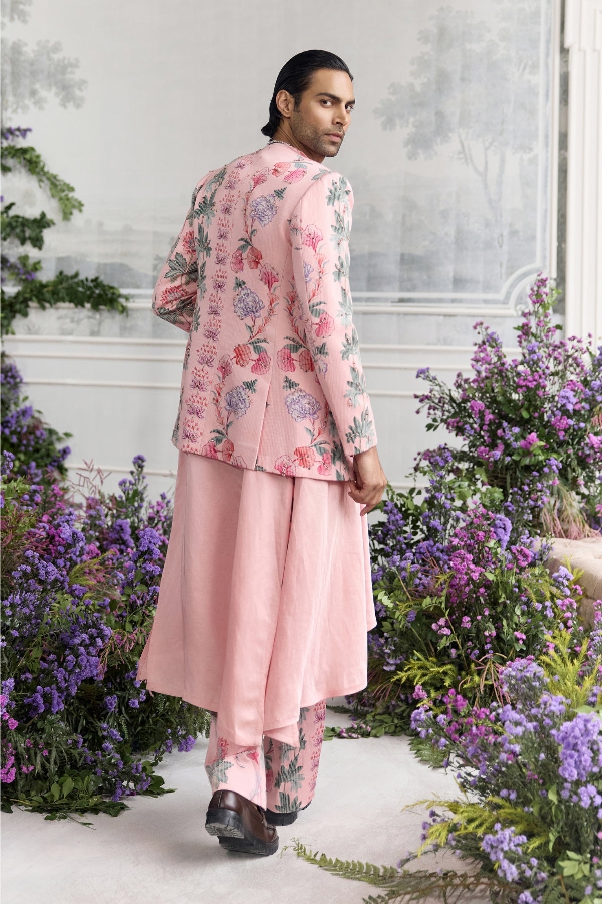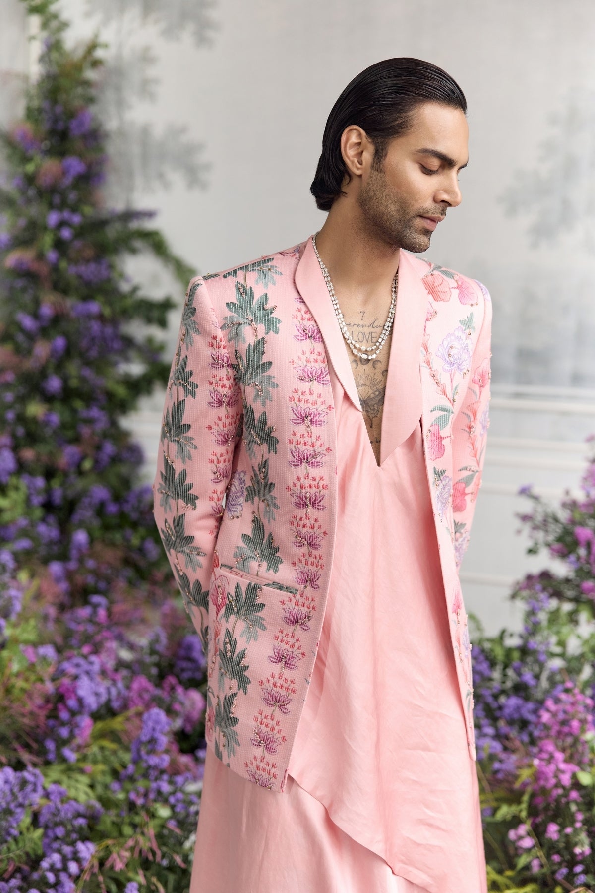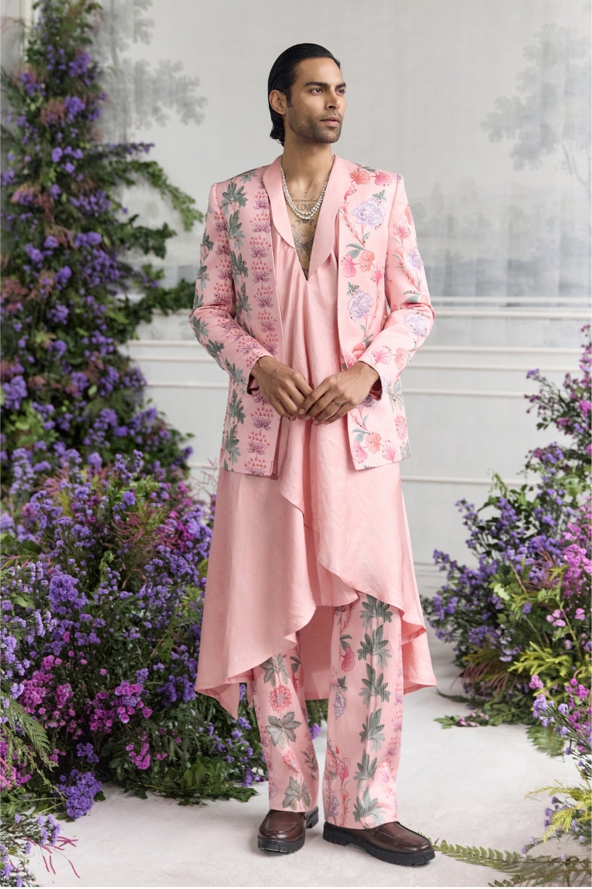 Quilted Hand Embroidered Blazer Paired With Angrakha Kurta And Quilted Trouser
