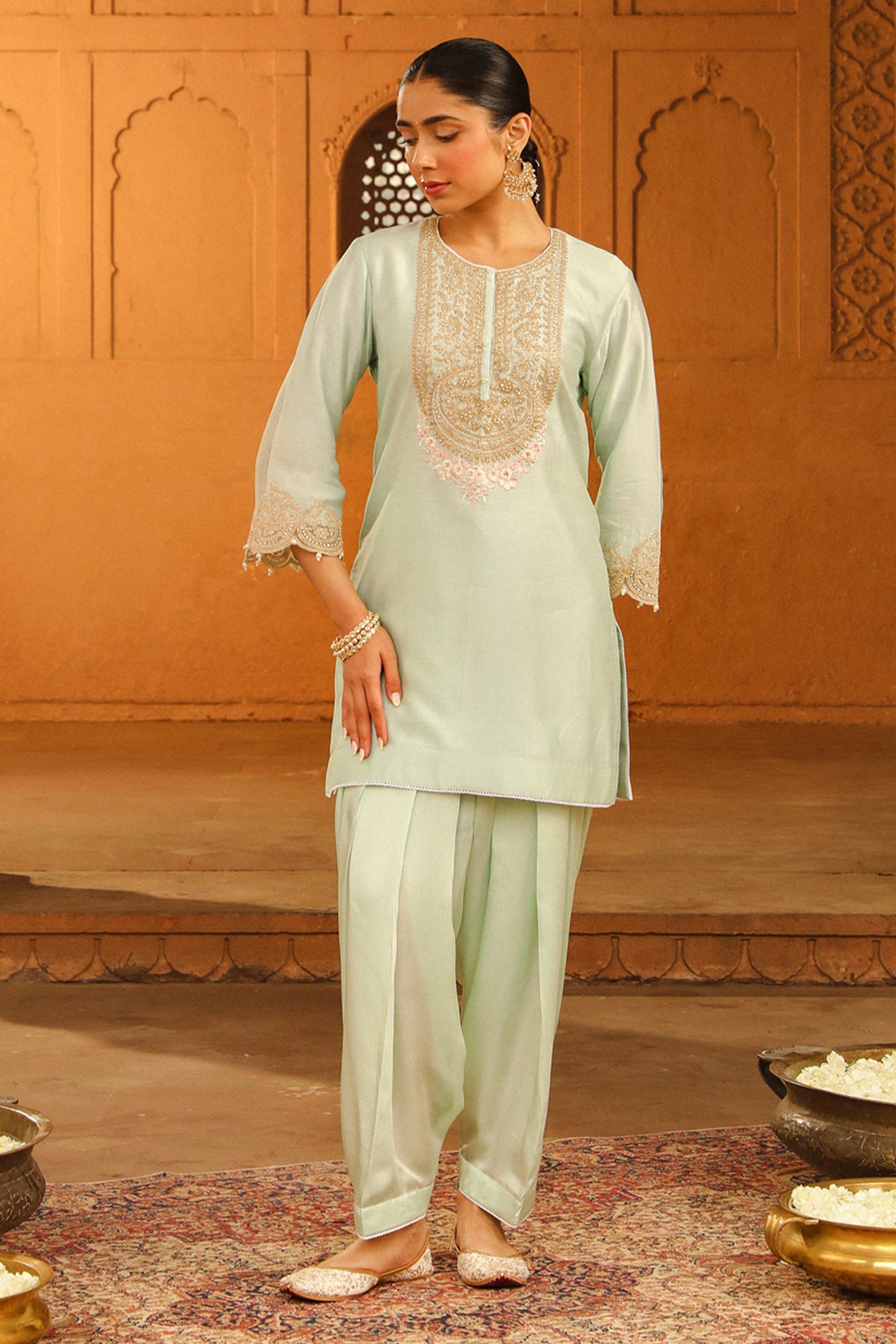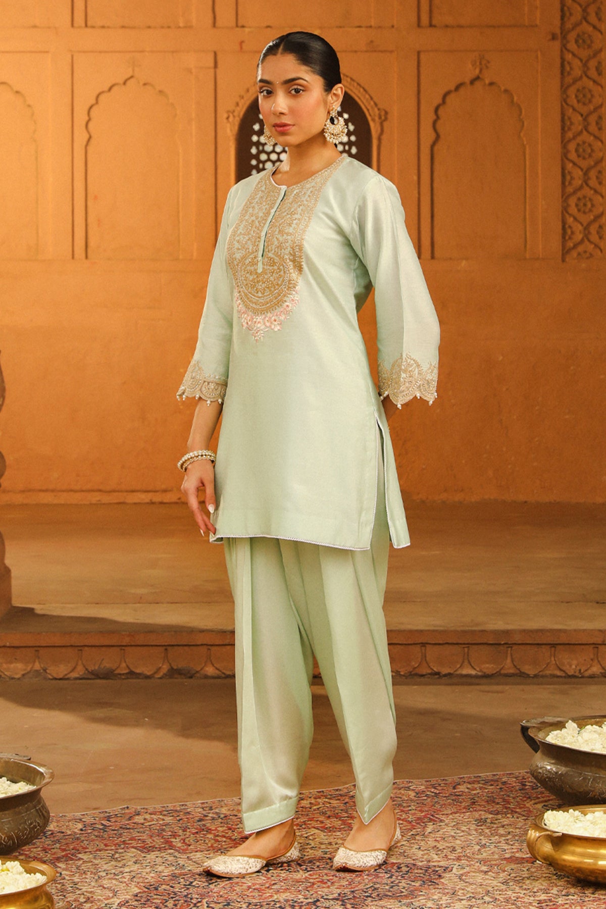 Composition: Kurta - Silk Chanderi; Bottom - Satin Silk