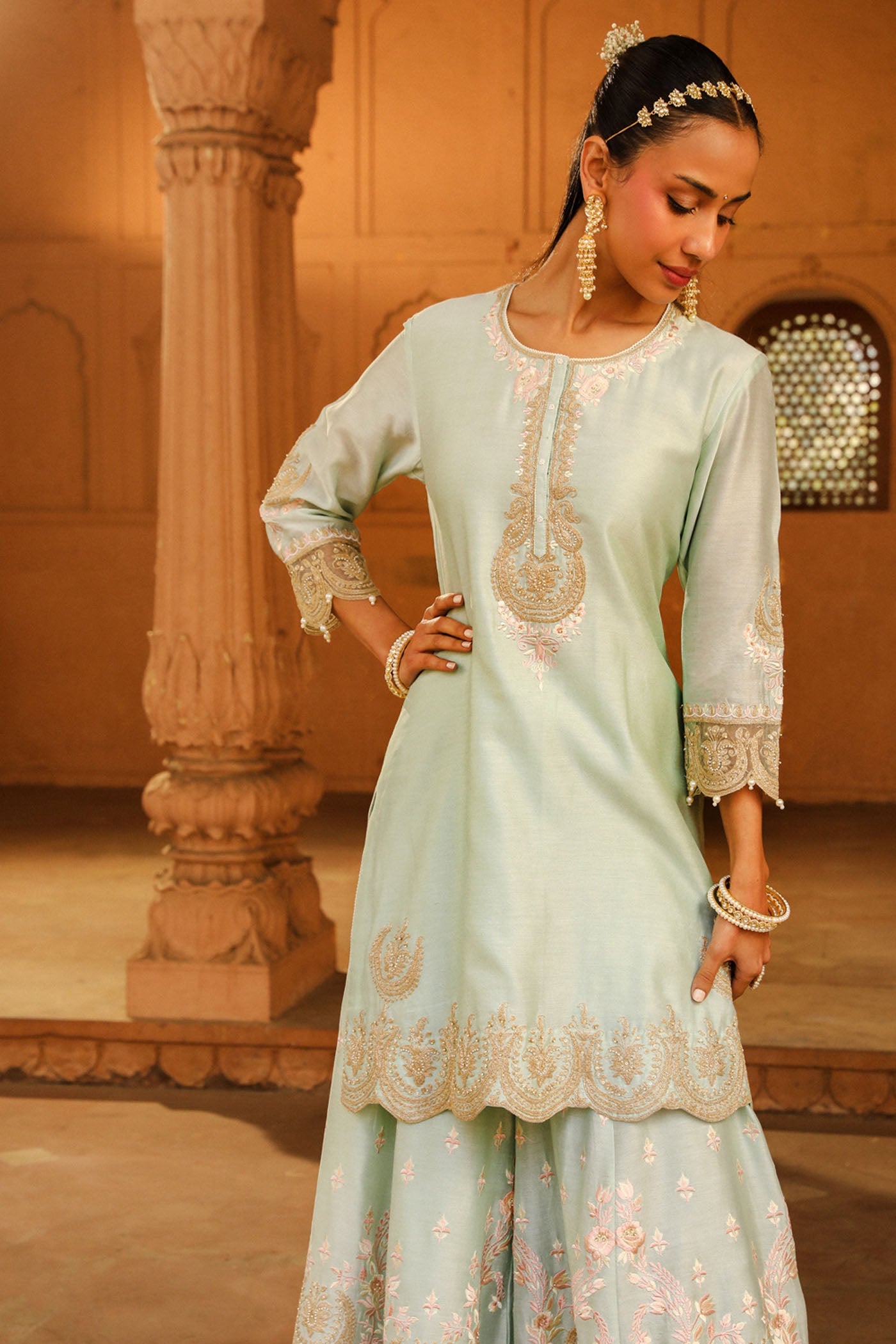 Ayda - Misty Green Kurta with Sharara and Dupatta