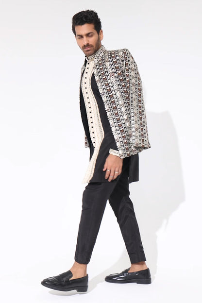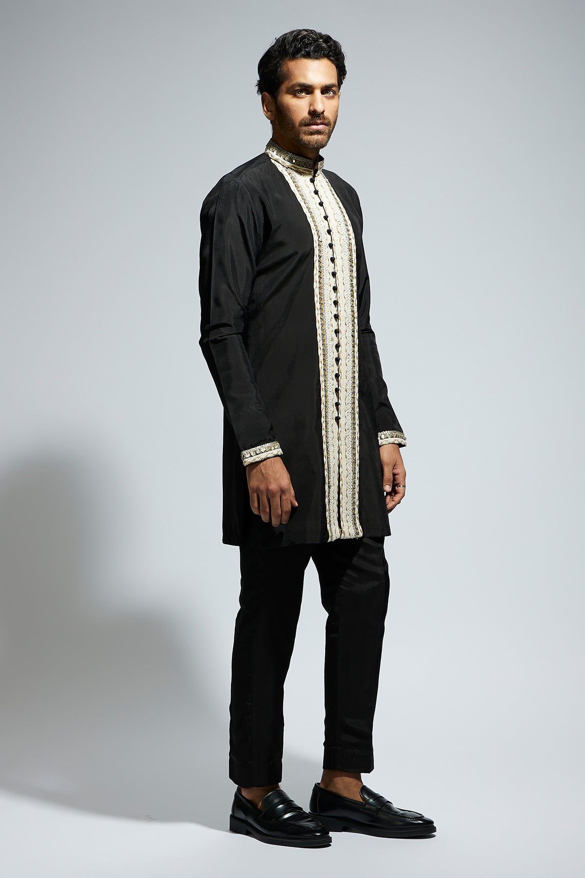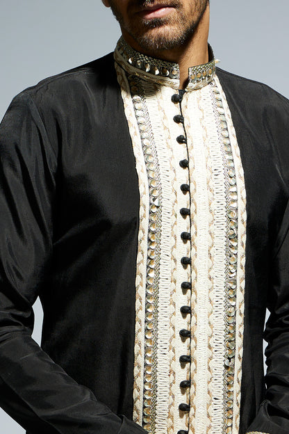 Black Front Open Threadwork Embroidered Kurta Paired with Pants