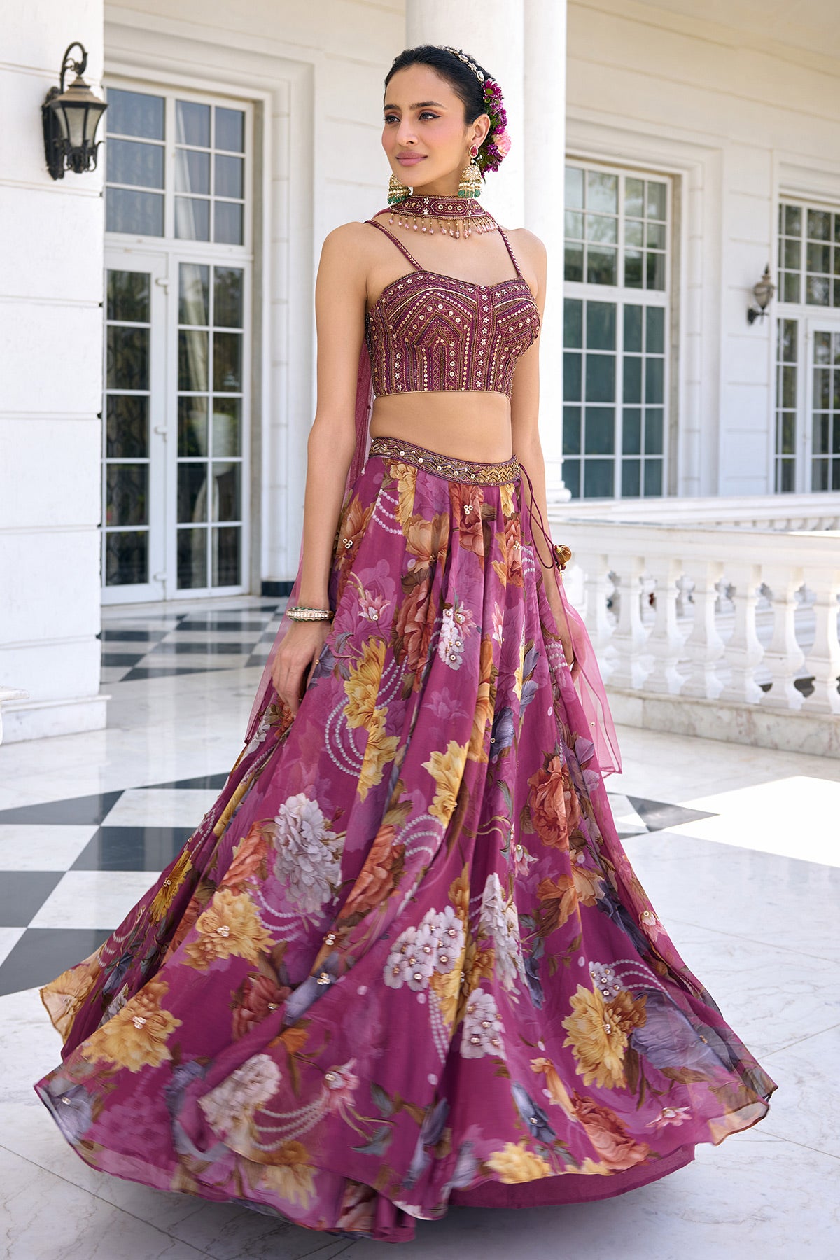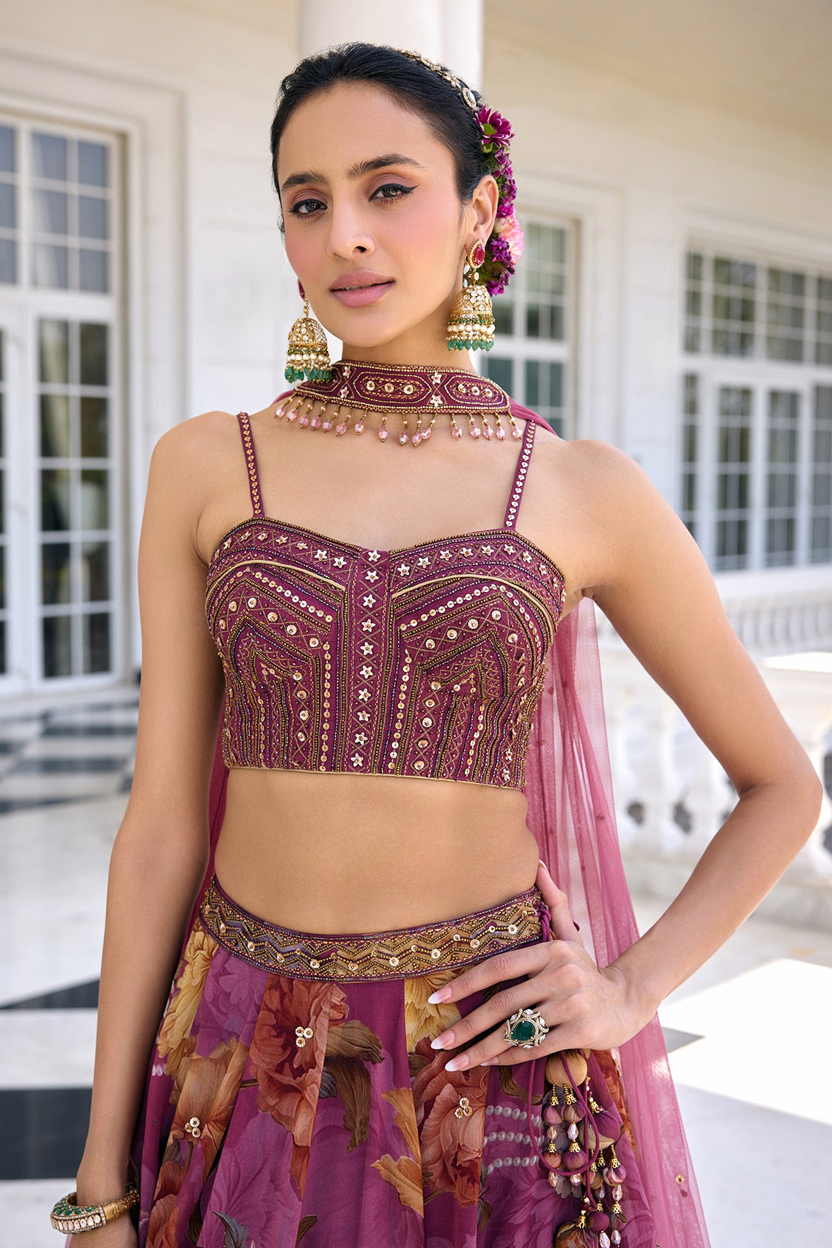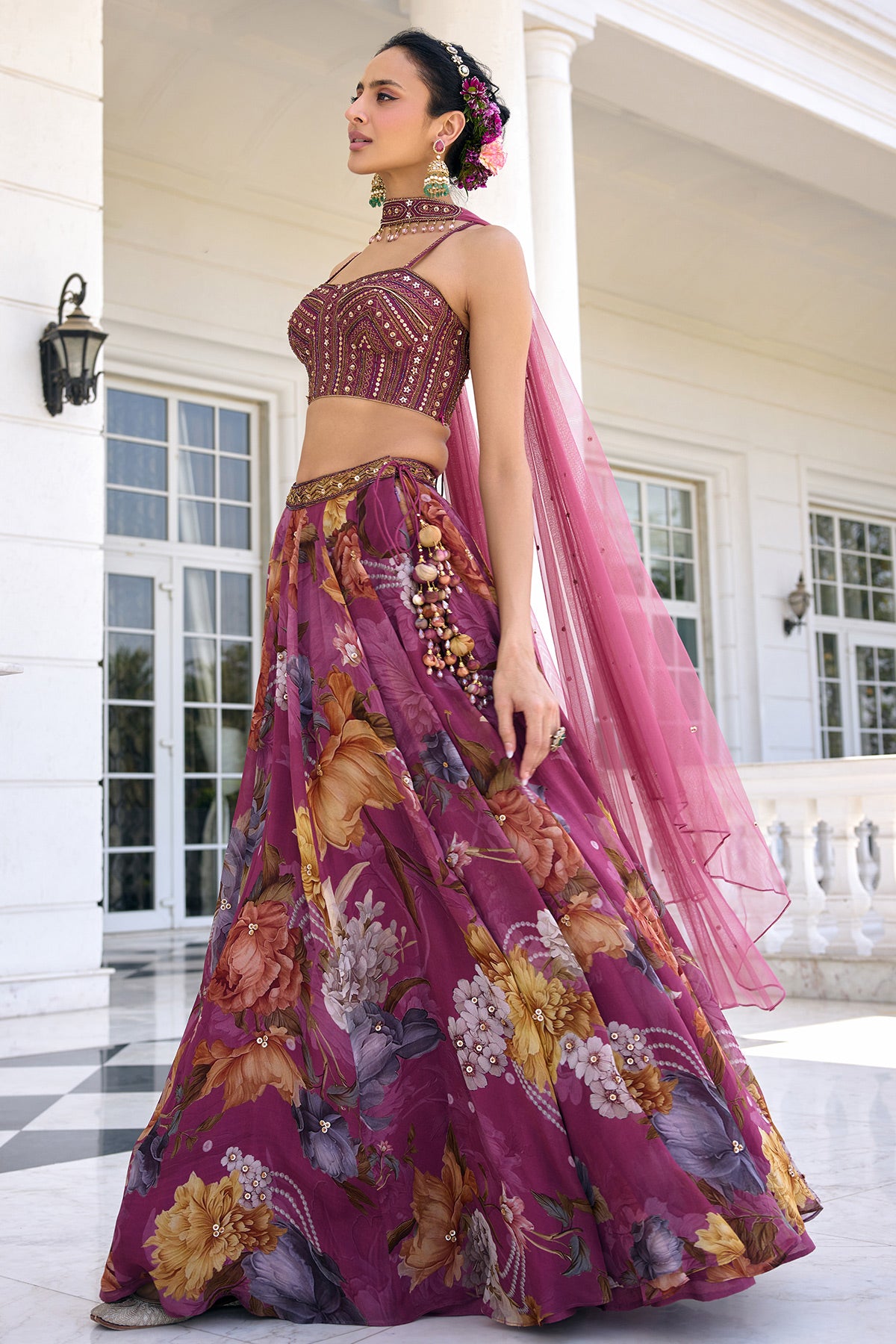 Colour: Blouse- Tyrian Purple Lehenga- Tyrian Purple Dupatta- Tyrian Purple