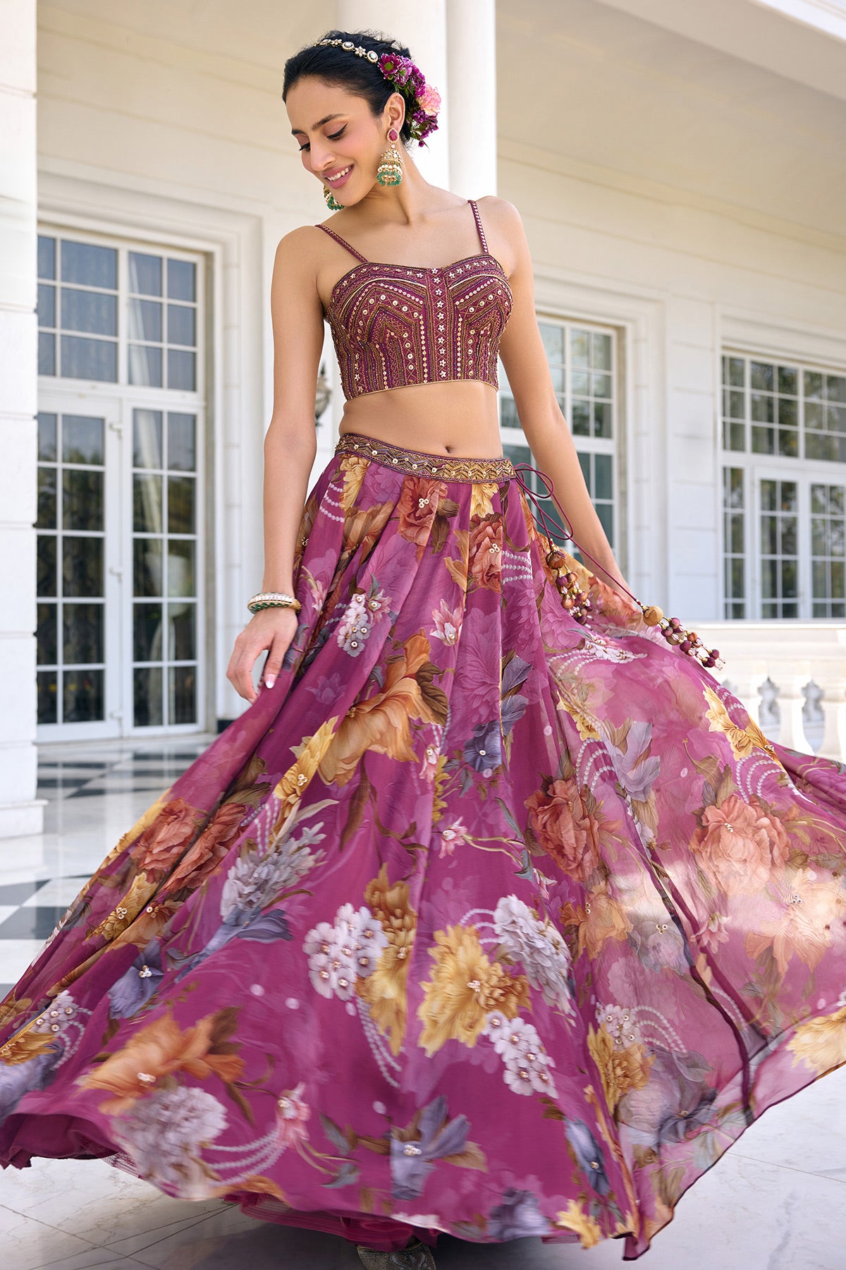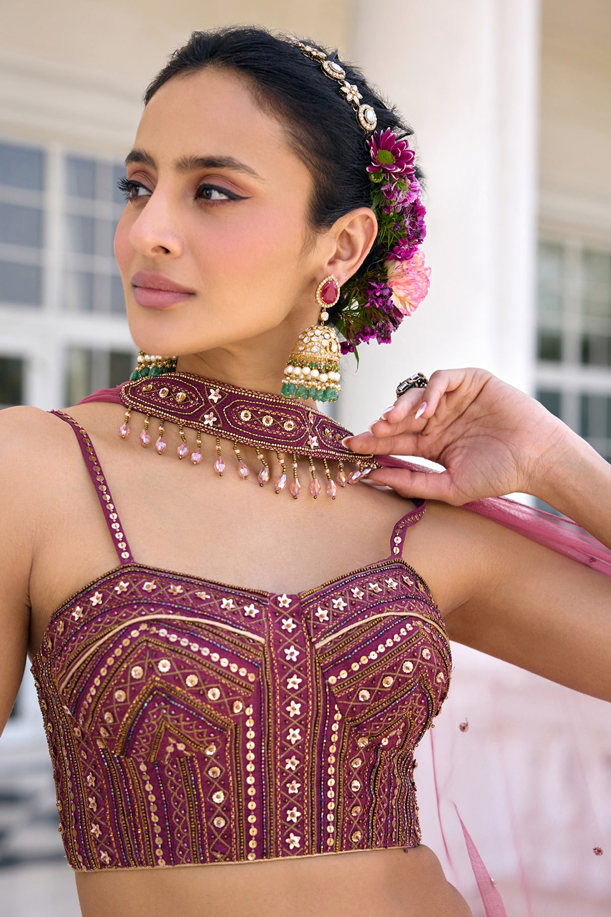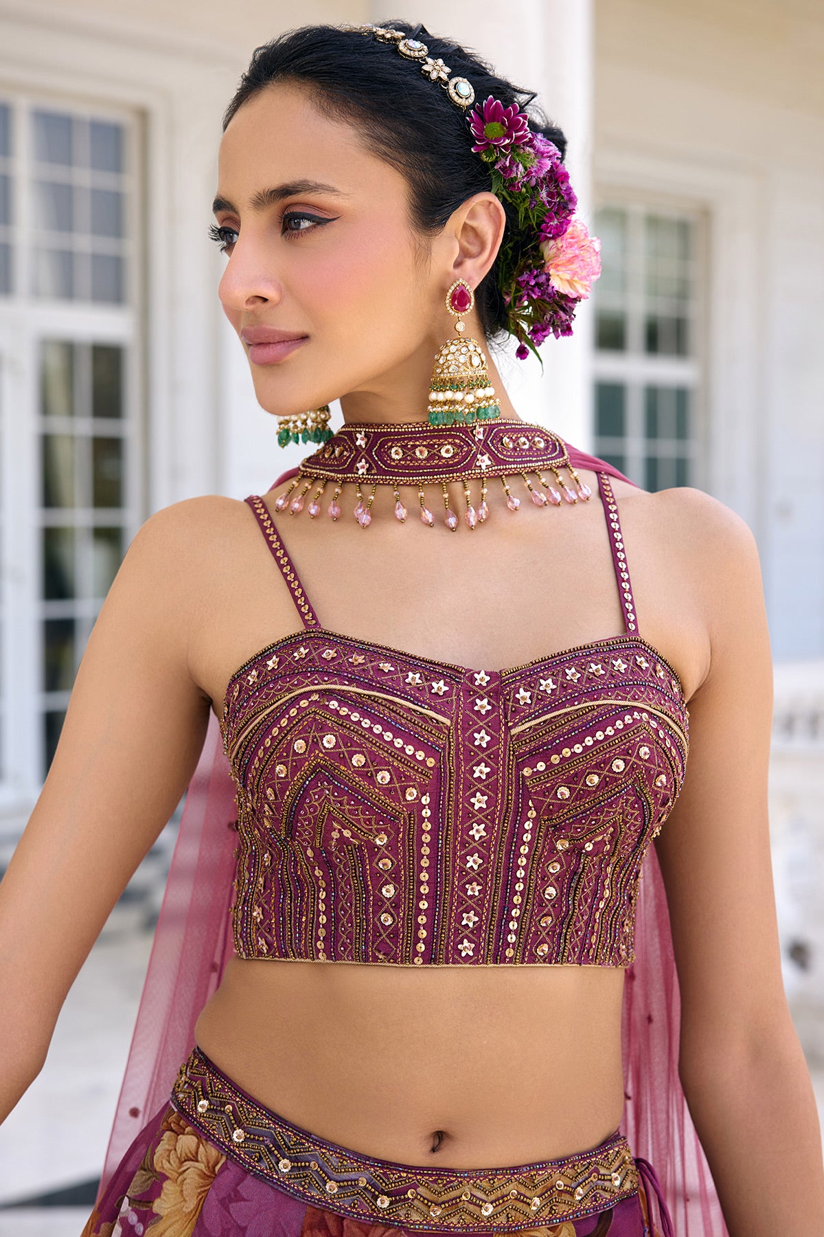 Colour: Blouse- Tyrian Purple Lehenga- Tyrian Purple Dupatta- Tyrian Purple