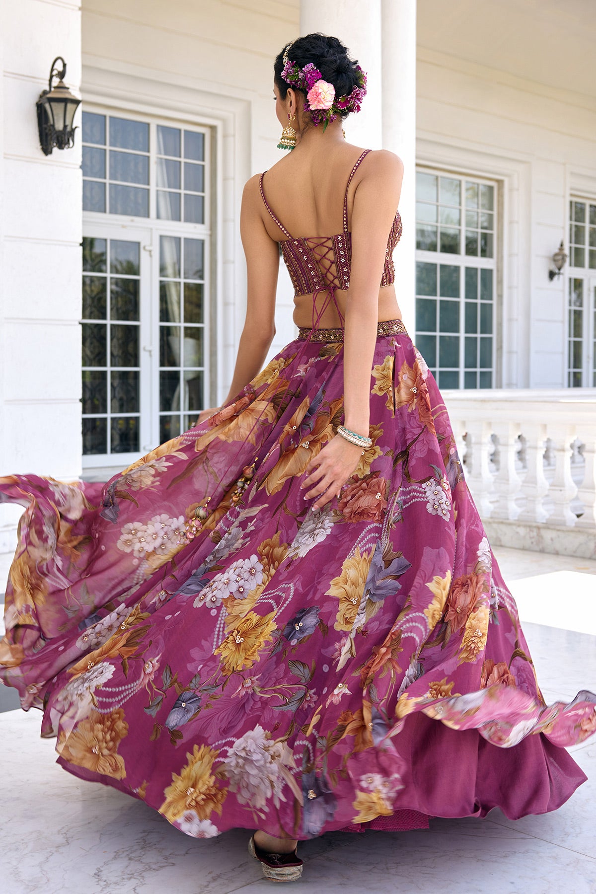 Composition: Corset- Dola Silk Skirt- Organza Dupatta- Butterfly Net Lining- Shantoon