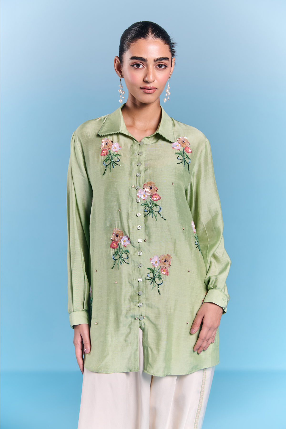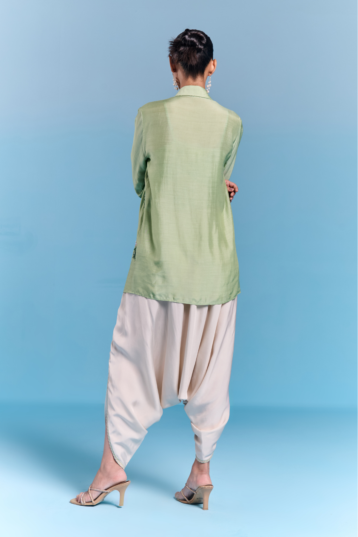 Indulge In The Grace Of Sequine And Shine - Featuring A Refined Floral Vinatge Embroidery On Shirt Intricate Sequine And Hread Work. It Is Paired With Graceful Dhoti Pants, Epitomizing Modern Sophistication With A Touch Of Classic Charm.perfect For Your Summer Outings.