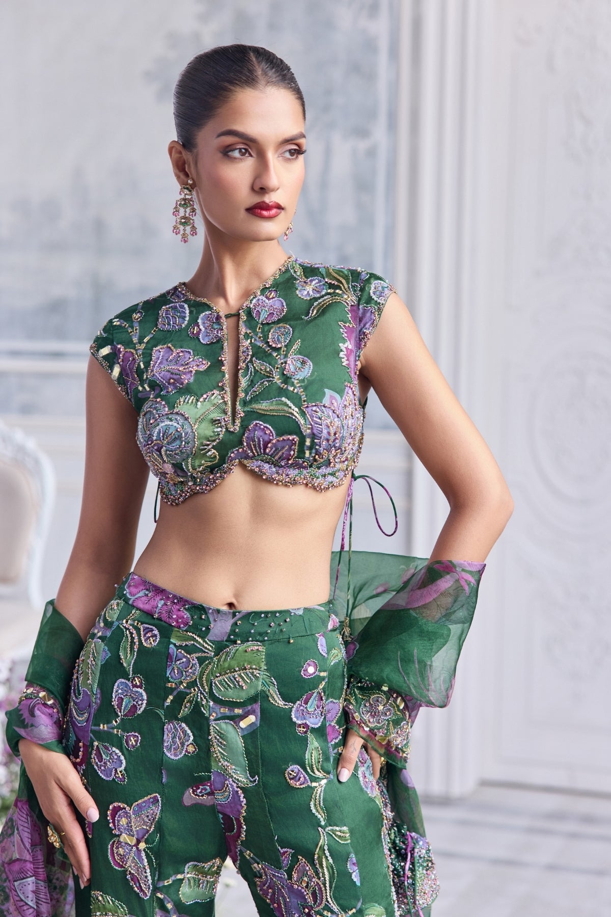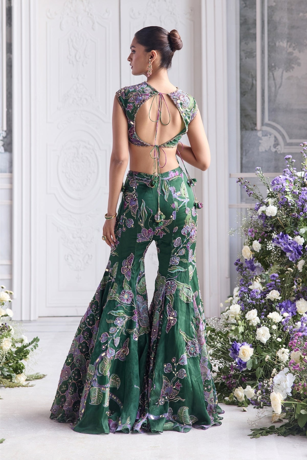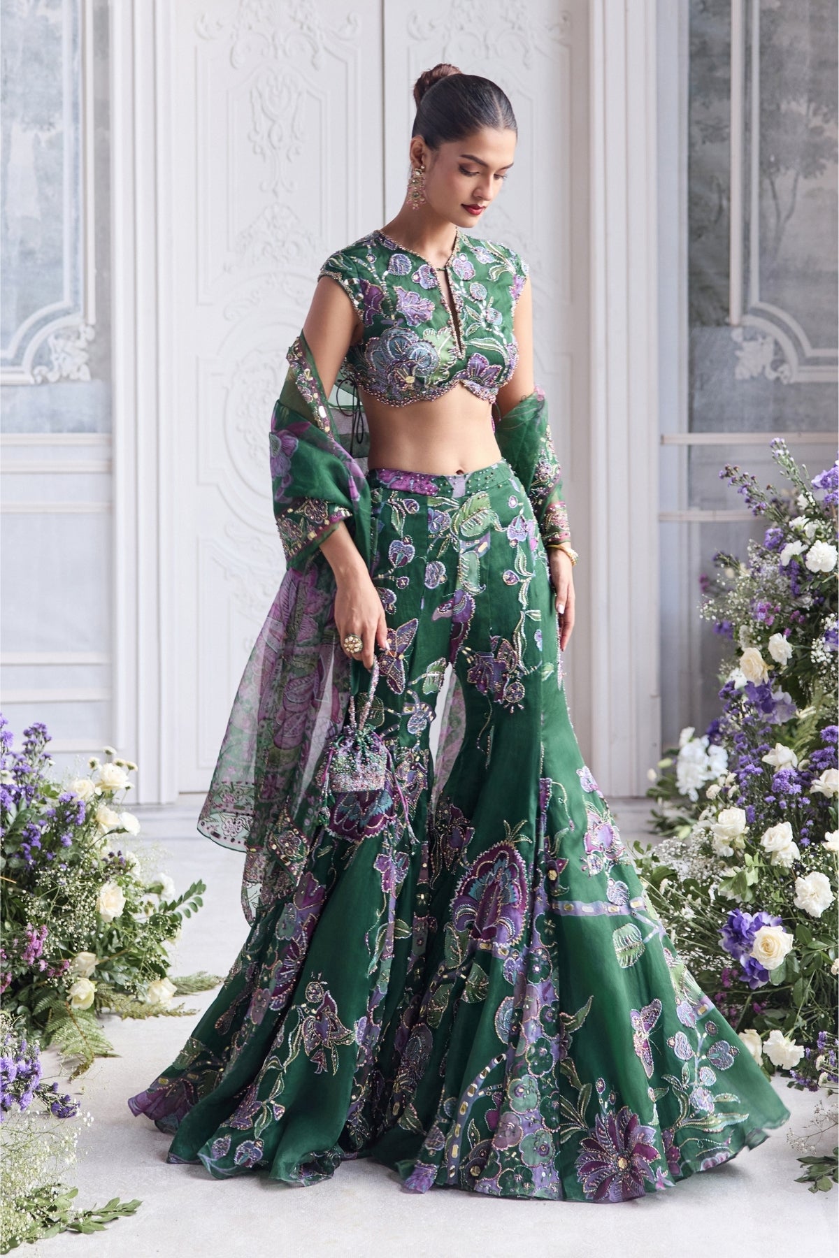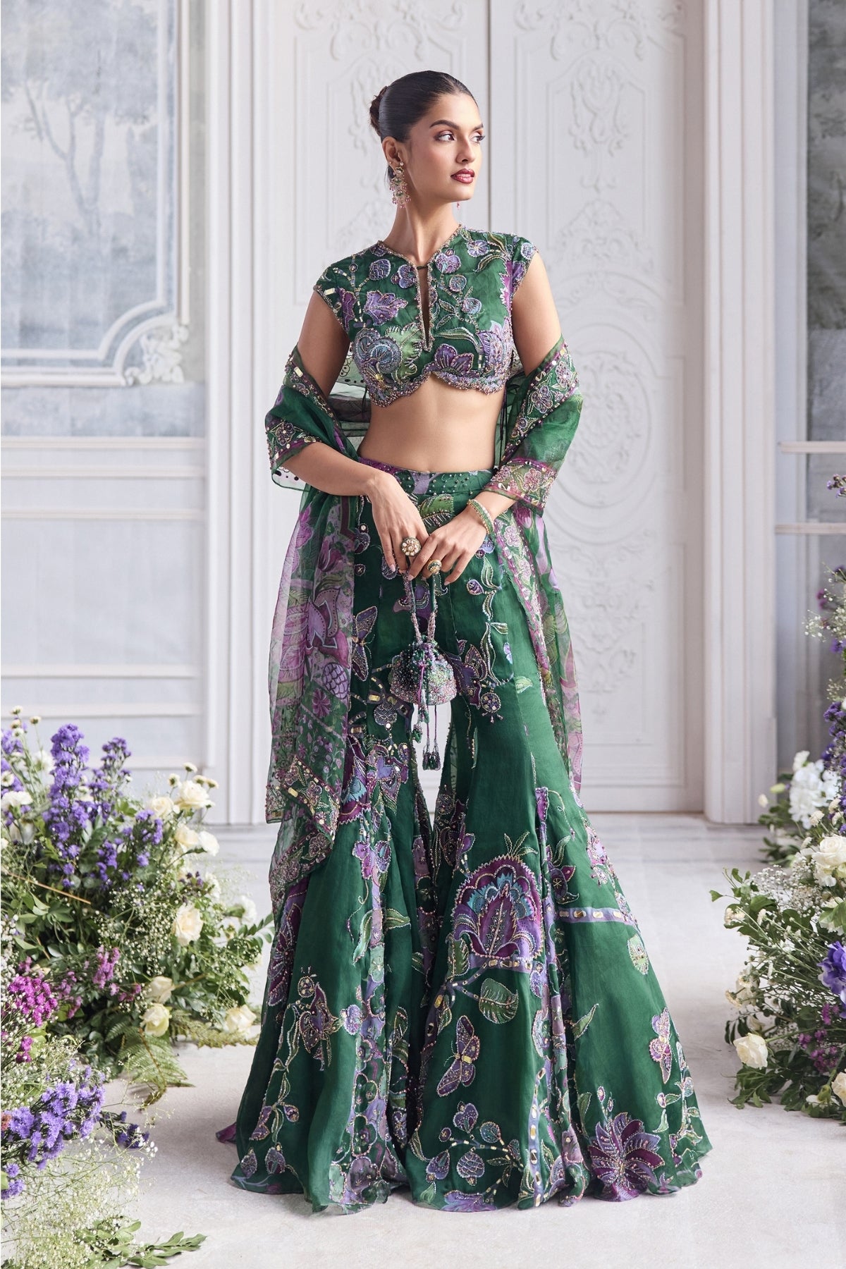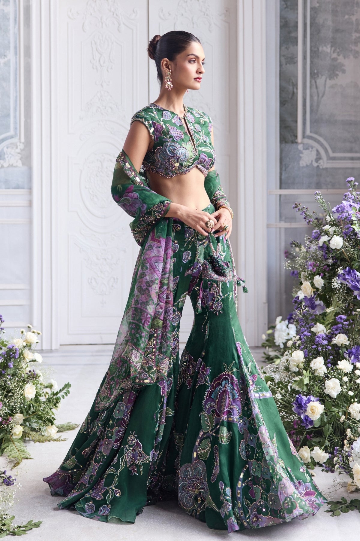 Heavy Hand Embroidered Cap Sleeves Blouse Paired With Heavy Embroider Dupatta And Sharara