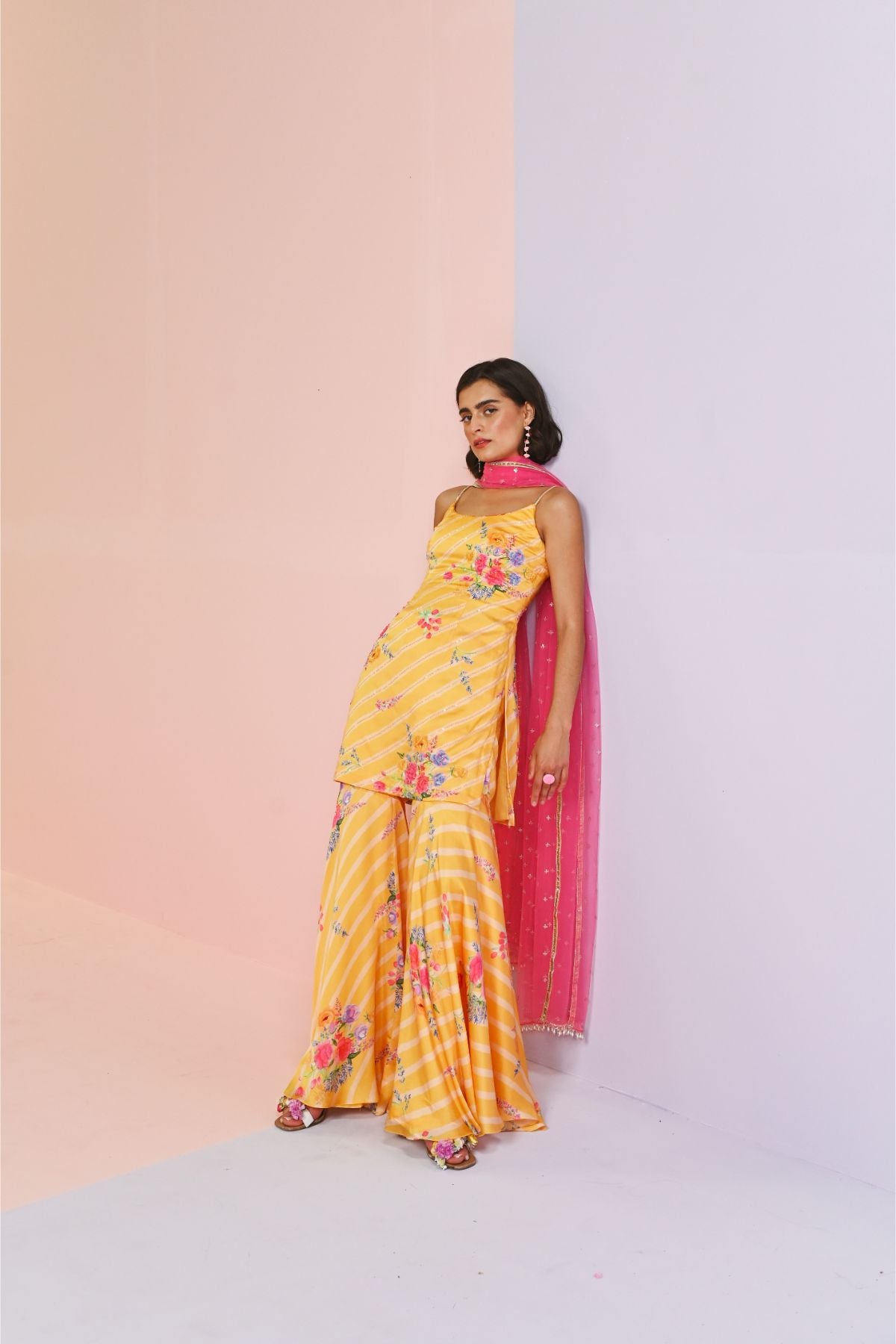 Sara Satin Shrara Set