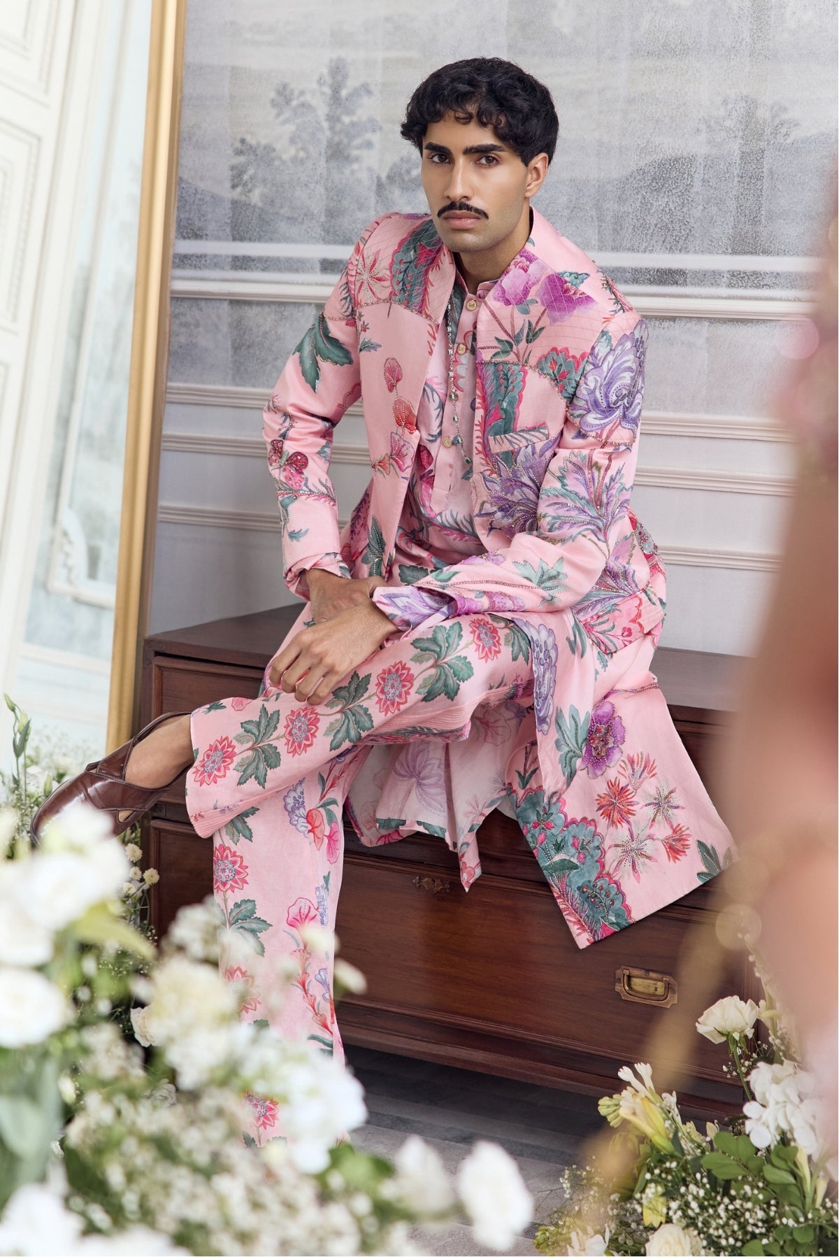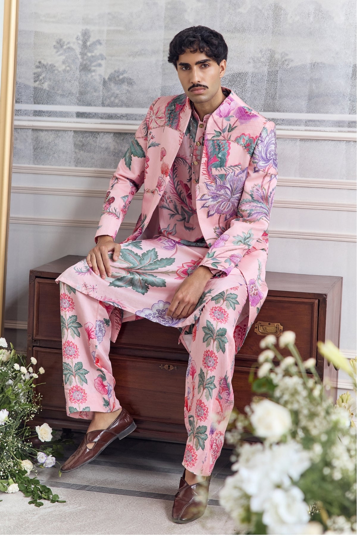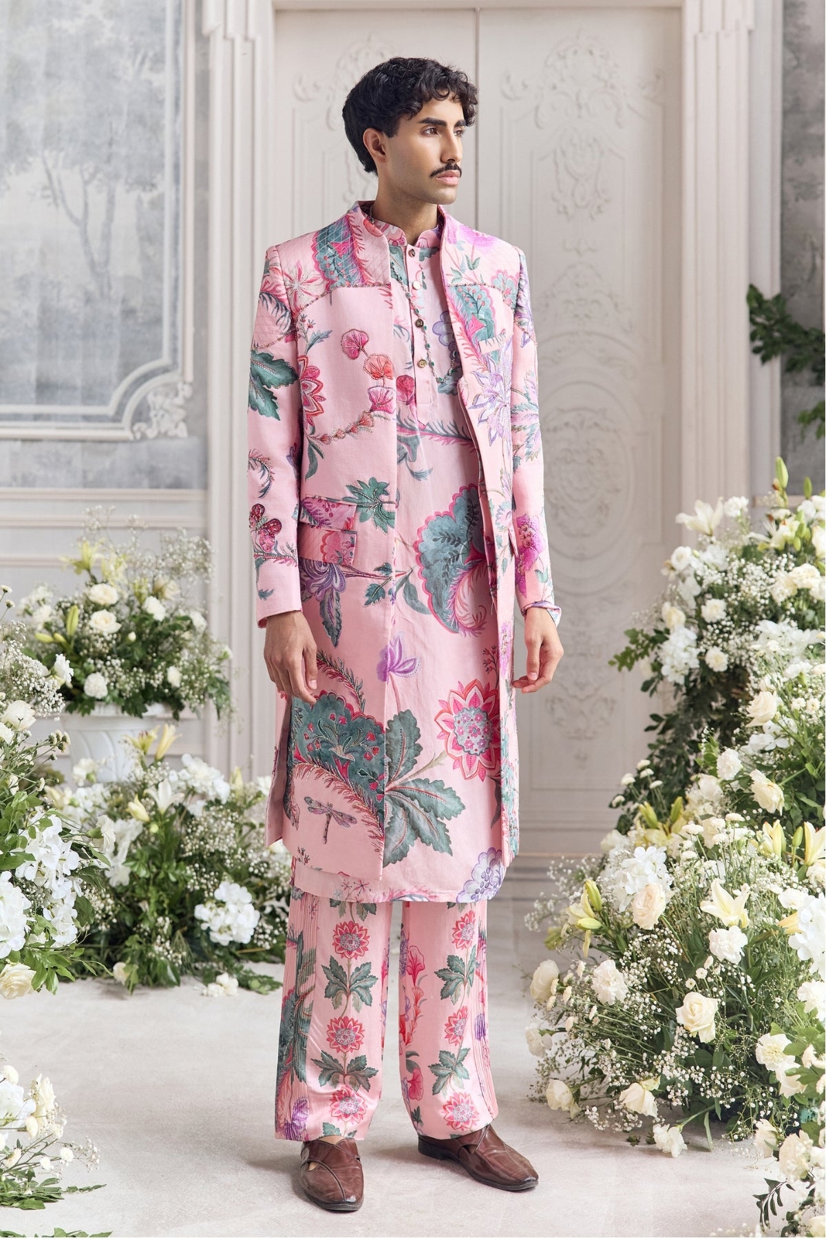 Hand Embroidered Sherwani Paired With Kurta And Pintuck Detailing Trouser