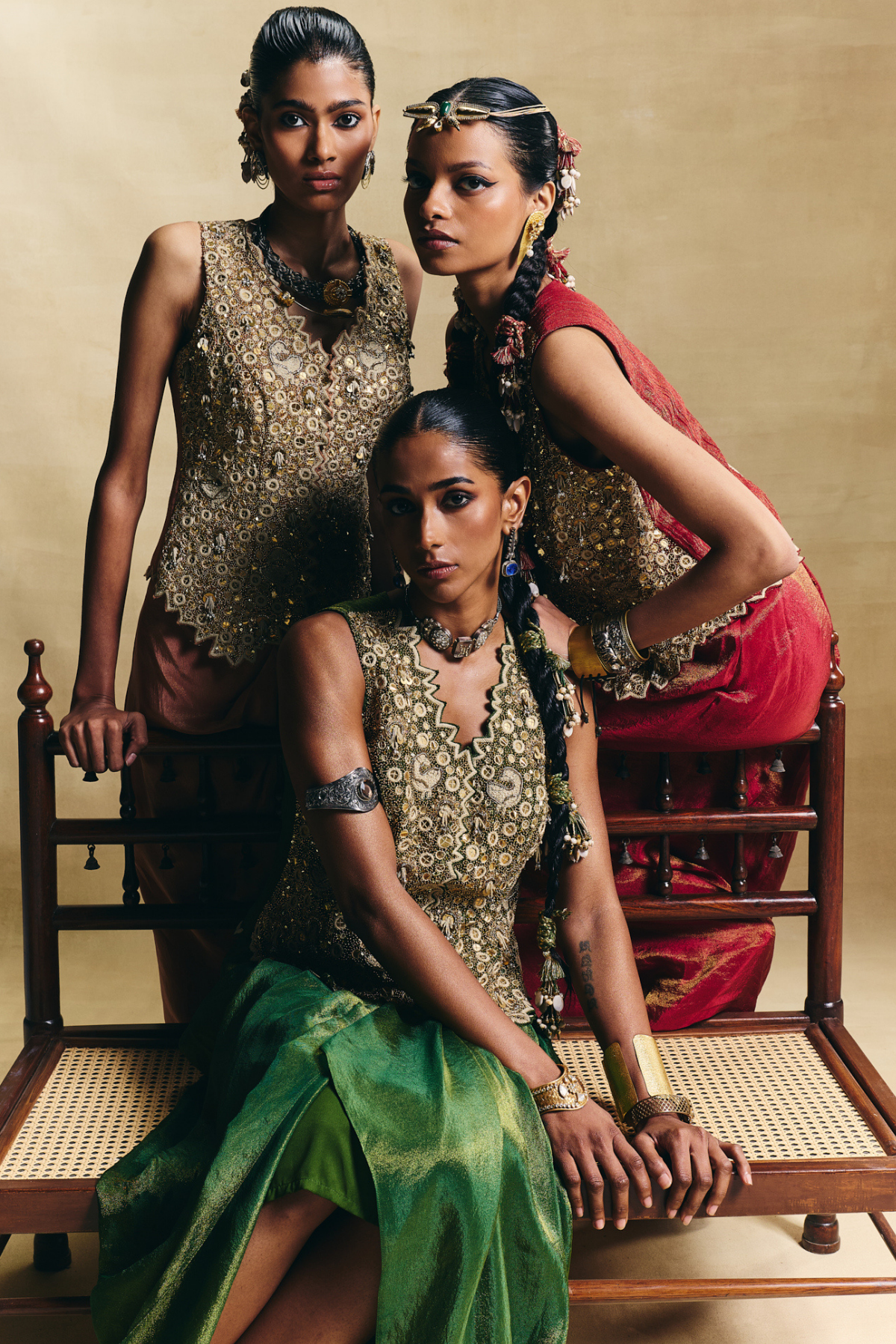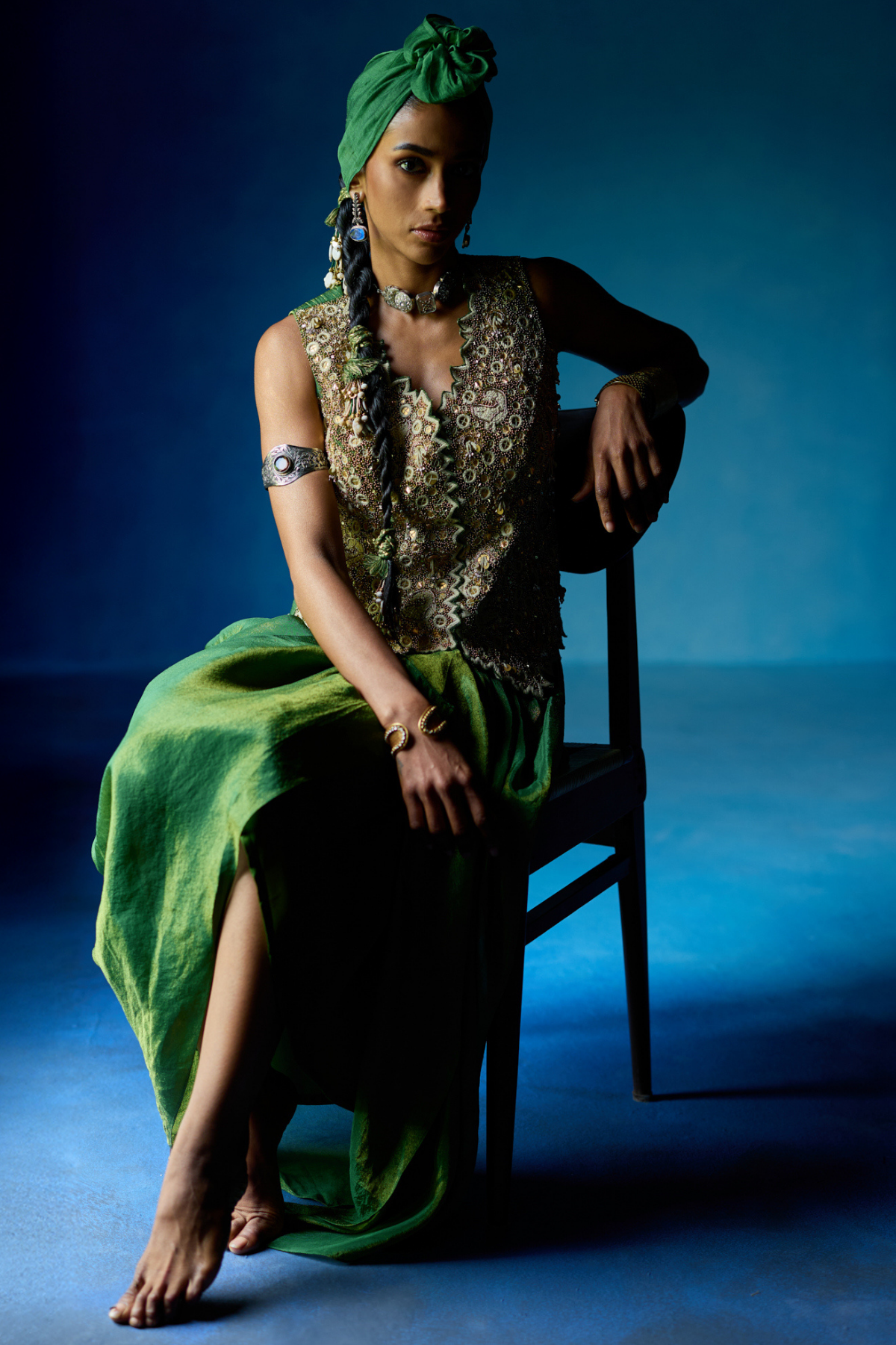 Green waistcoat & draped skirt