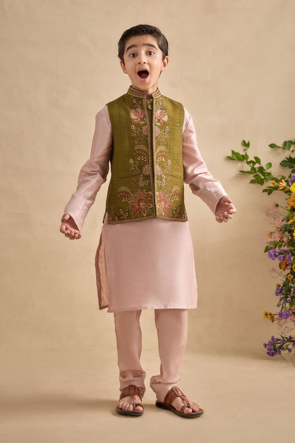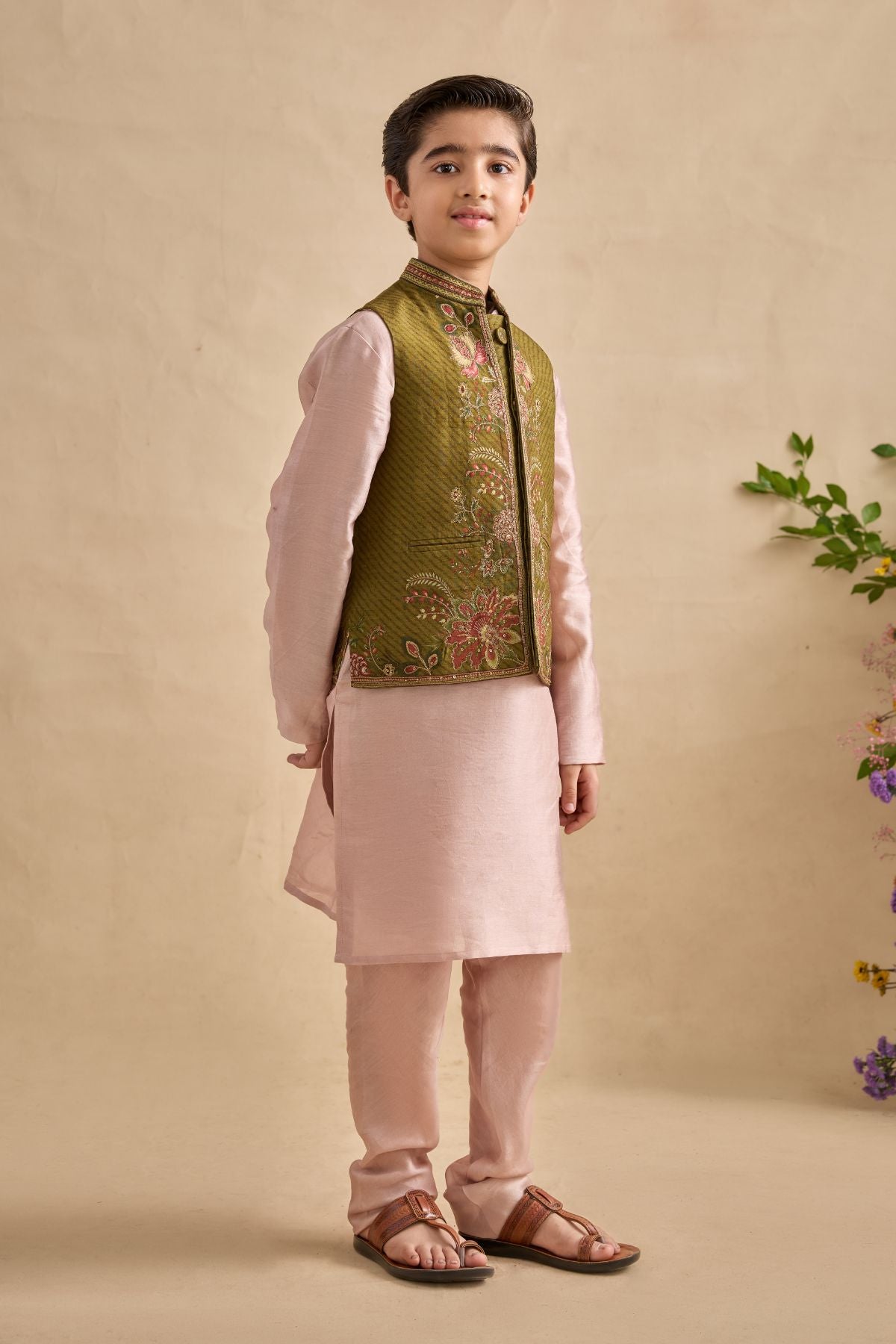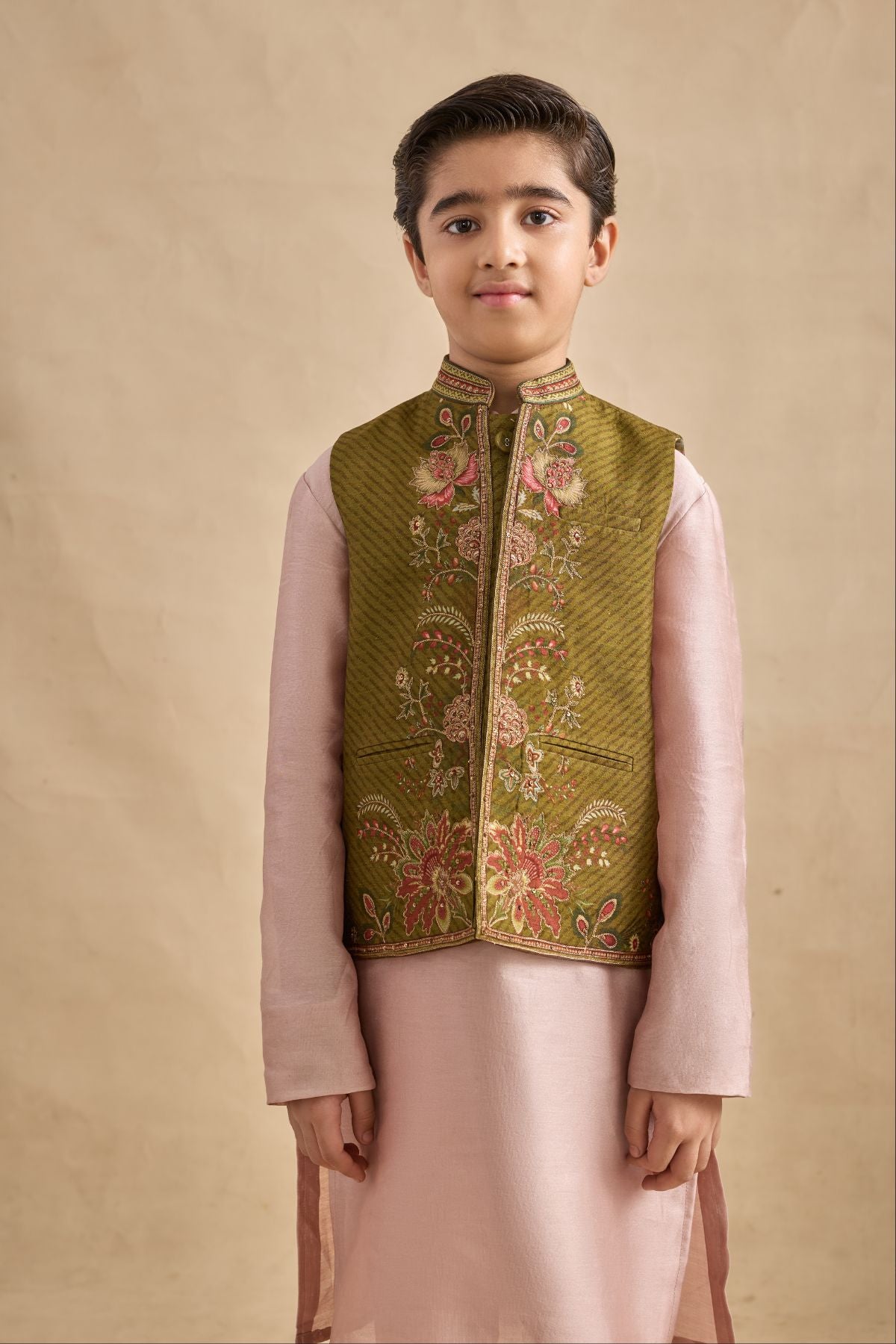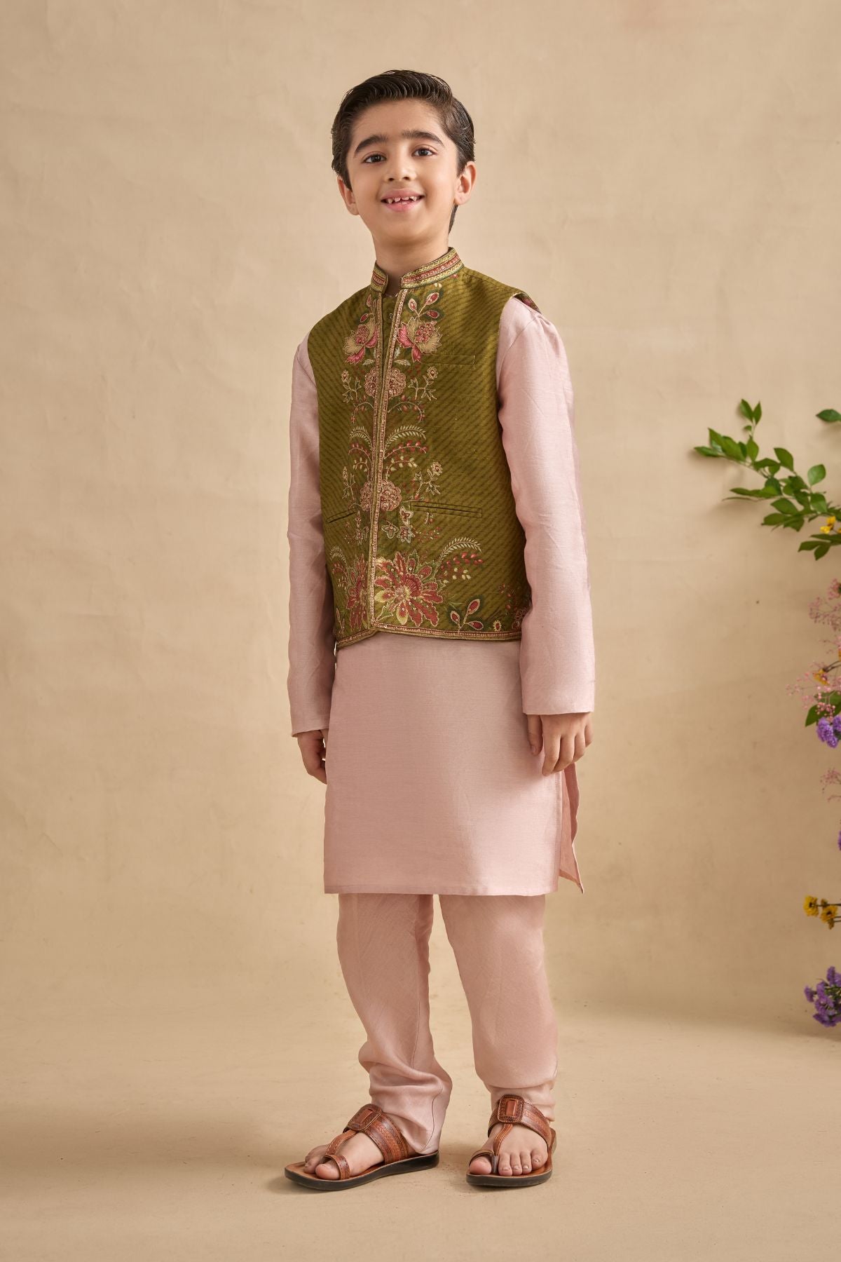 Beautifully crafted Ishvik Bandi set to make your kid giving style statement , incricate detailing along the placket makes it even more attractiv . Perfect outfit to ace that contemporary Indian look.