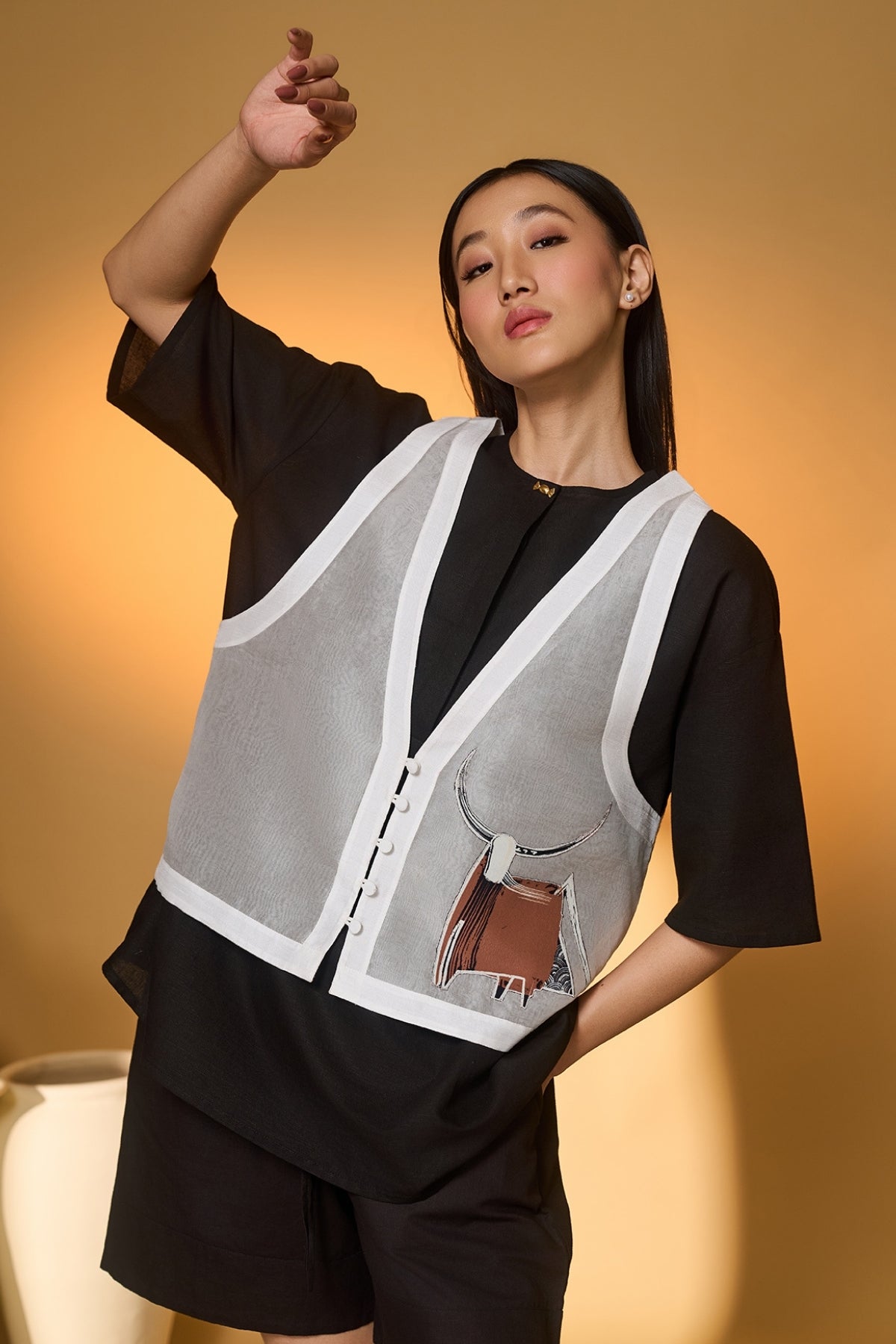 Fabric: Shirt- Cotton Linen | Shorts- Cotton Linen | Vest- Organza