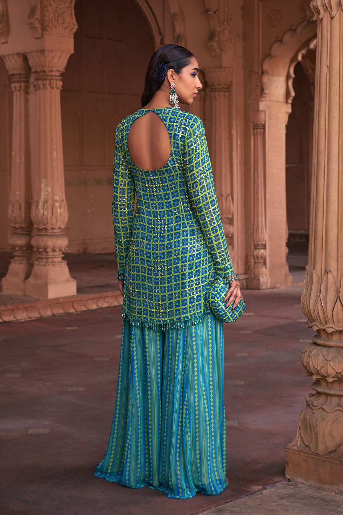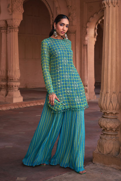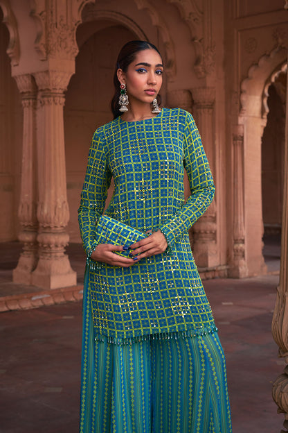 LIME YELLOW GRID PRINT & HIGHLIGHTED KURTI SET