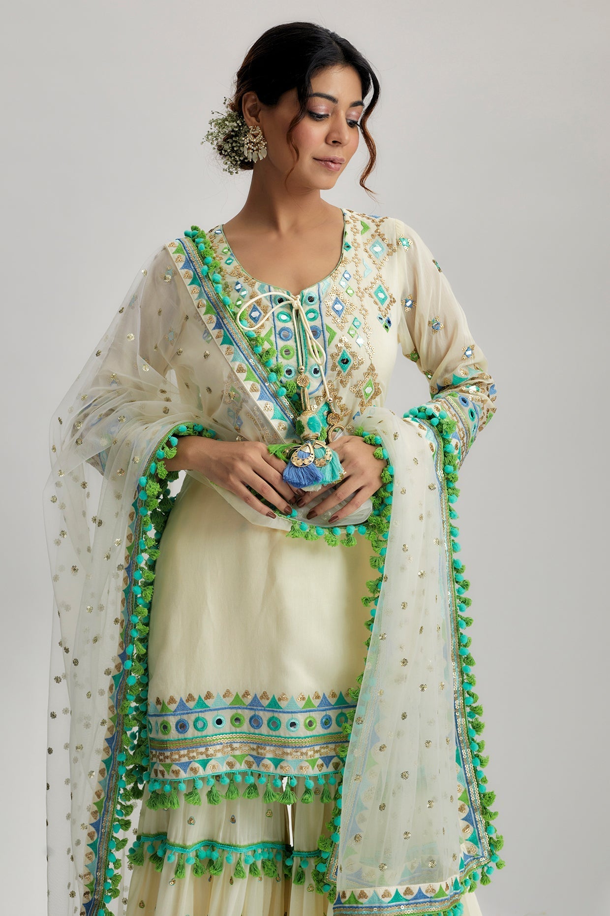 - Fabric Composition: Kurta - Cotton silk, Sharara Set - Cotton Satin, Dupatta - Net