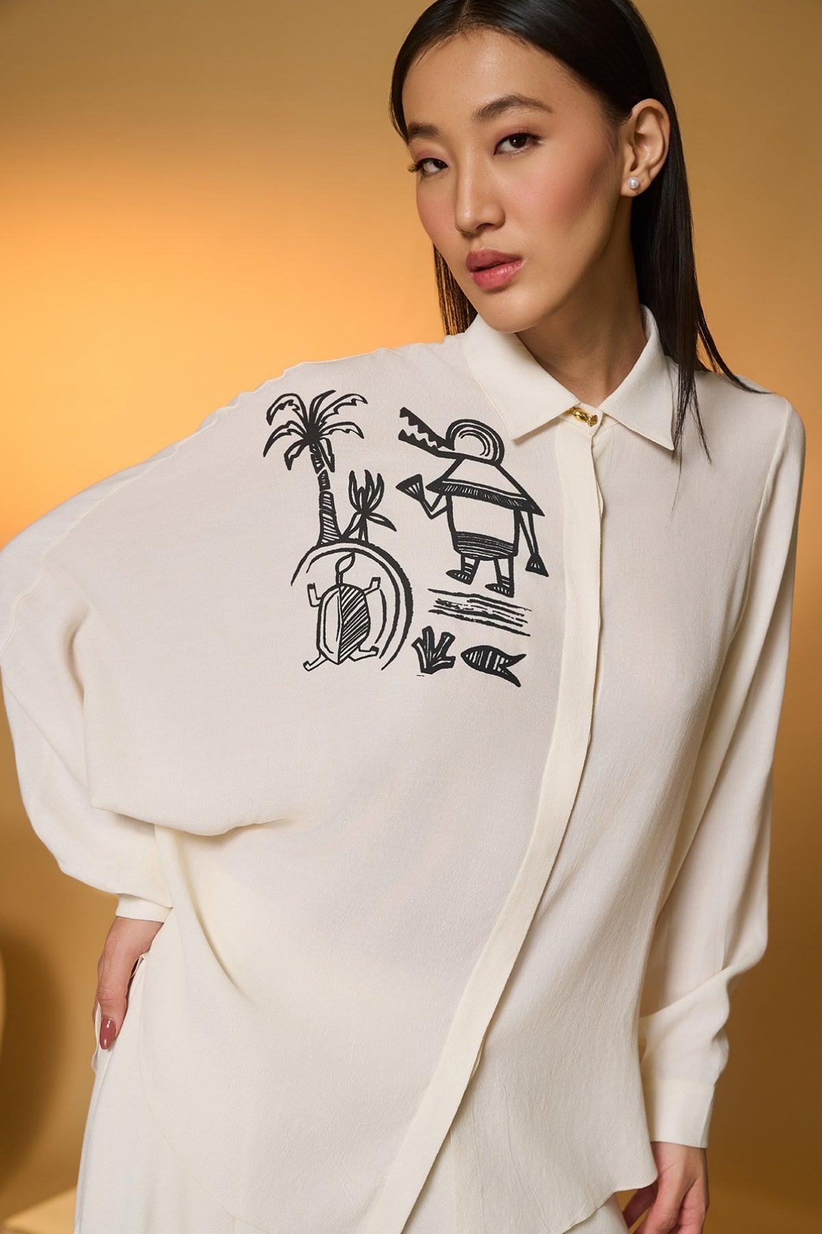 Shirt- One side Batwing sleeves | Front closure | Turtle dream placement print on the right shoulder