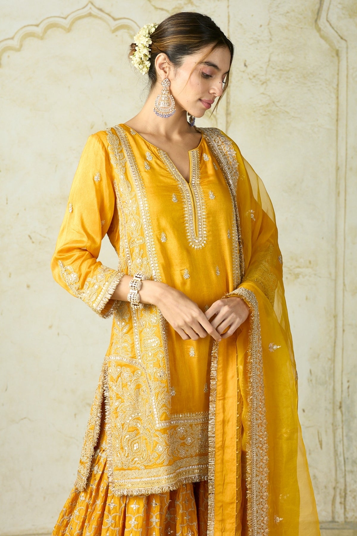 Fabric: Kurta-Tussar, Sharara- Tussar, Dupatta-Organza