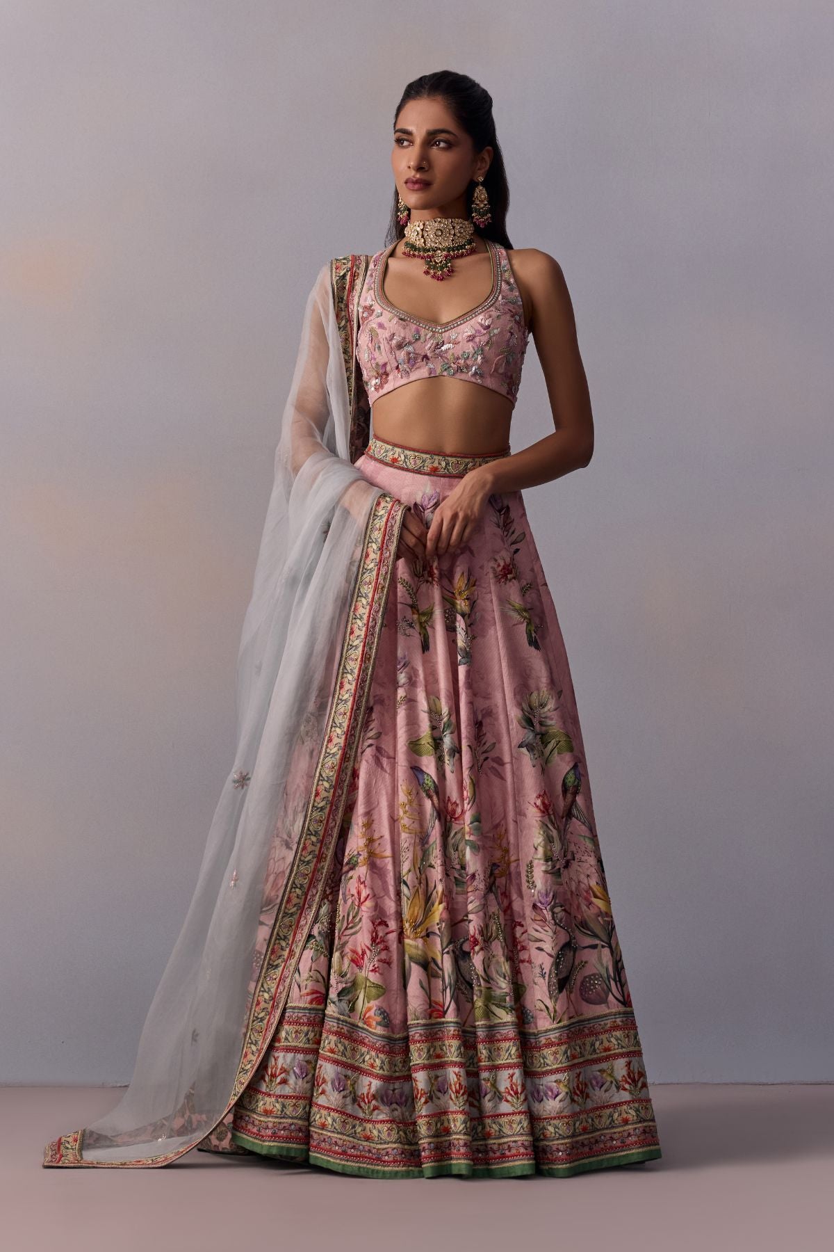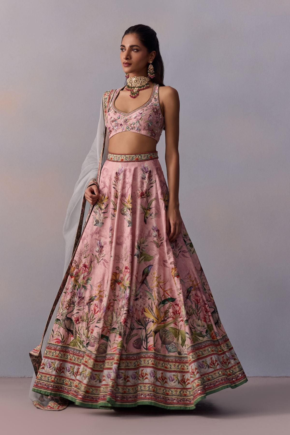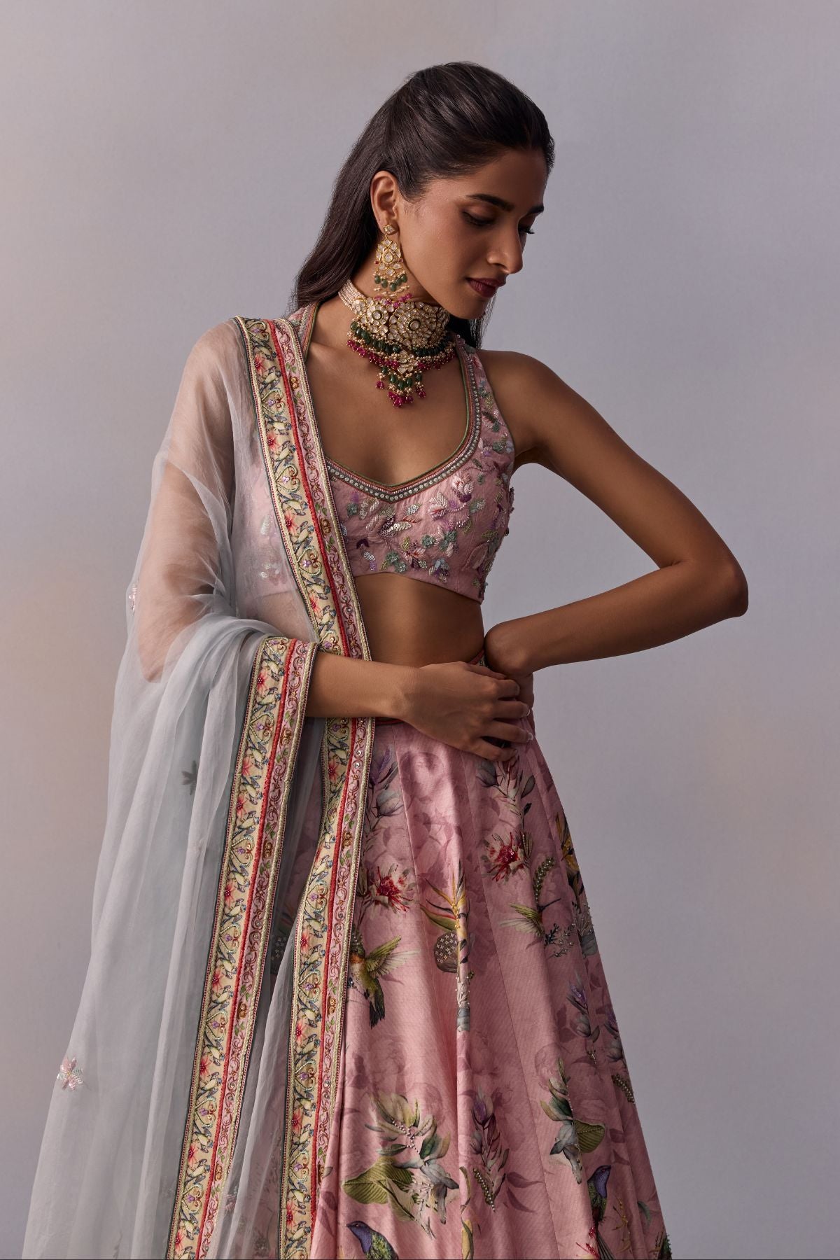 Colour: SKIRT AND BLOUSE - POWDER PINK DUPATTA - POWDER BLUE