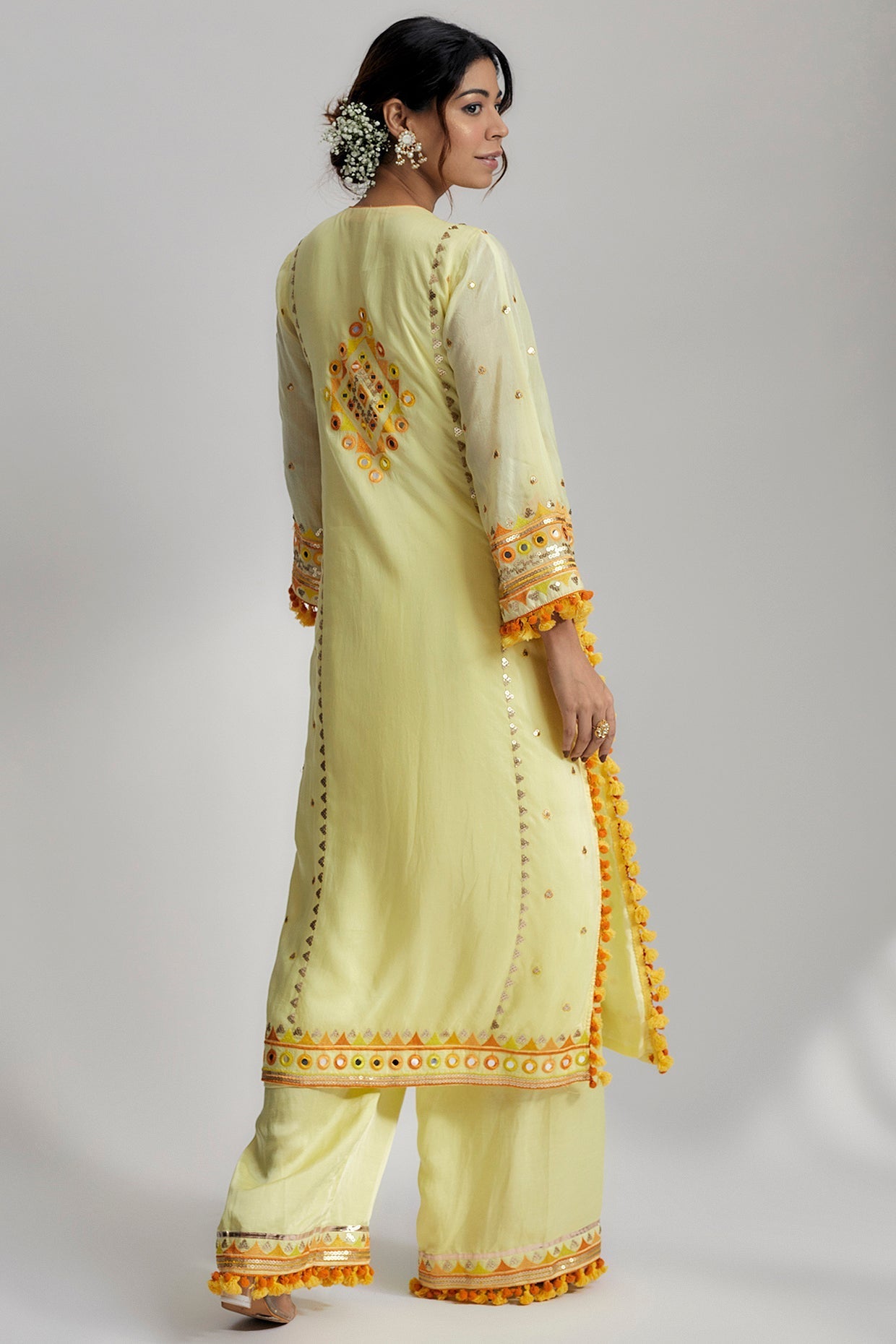 The Nishika Long Kurta With Palazzo Is A Stunning Ensemble That Combines Traditional Elegance With Contemporary Flair. Crafted With Exquisite Attention To Detail, This Outfit Is Perfect For Those Seeking A Stylish And Culturally Rich Look.