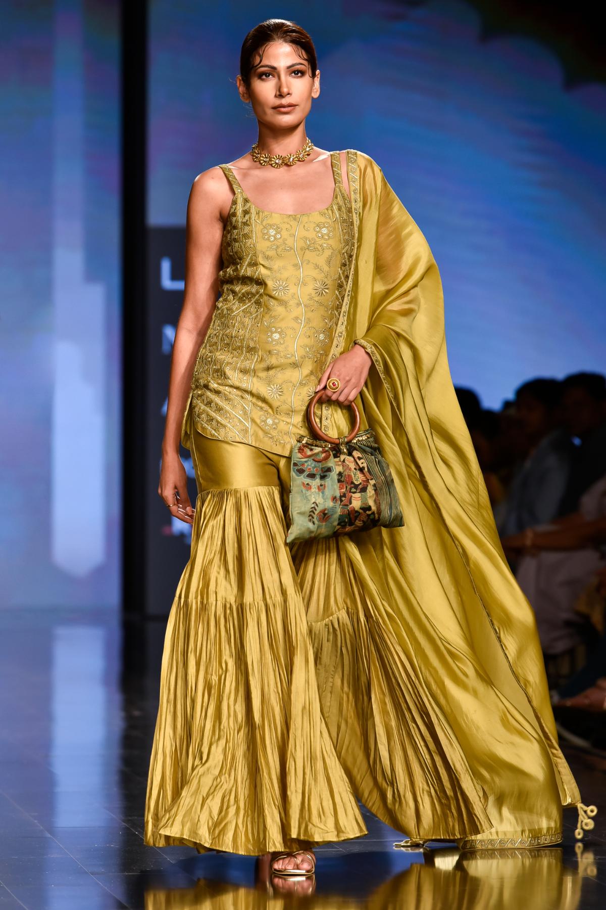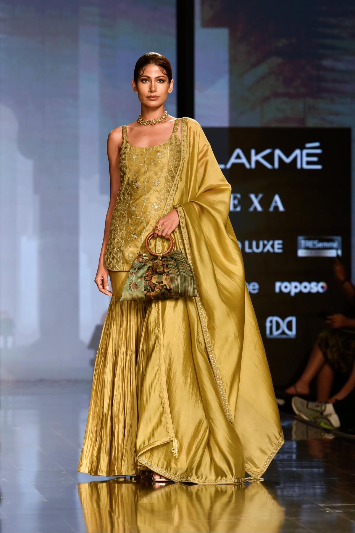 Leather Resham Work Full Embroidered Kurti With Gharara And Silk Organza Embroidered Border Dupatta Collection Name- Lakshmi