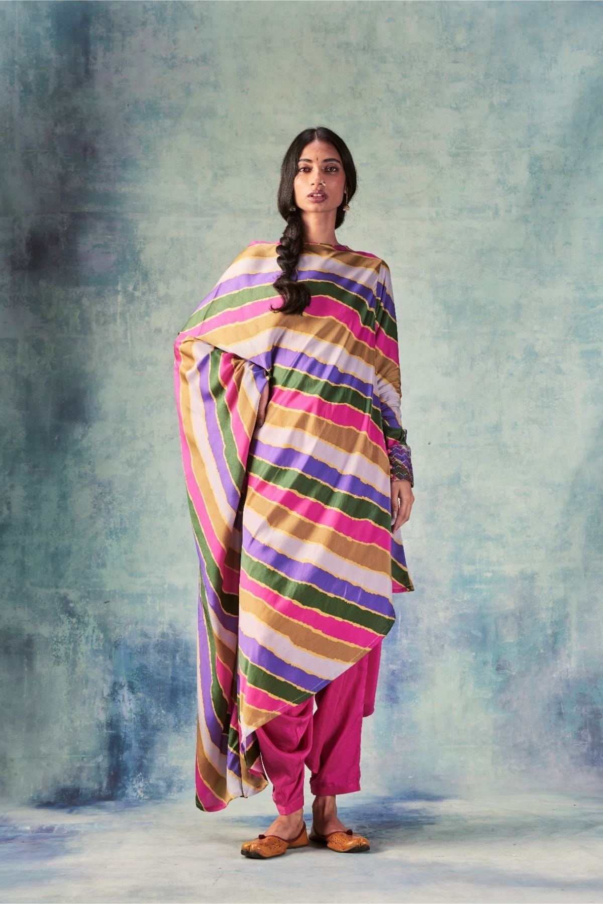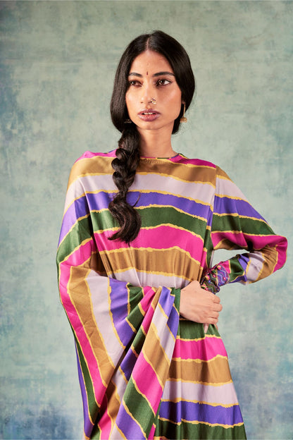 Stripes Printed One Sleeve Dress With Cowl Pants