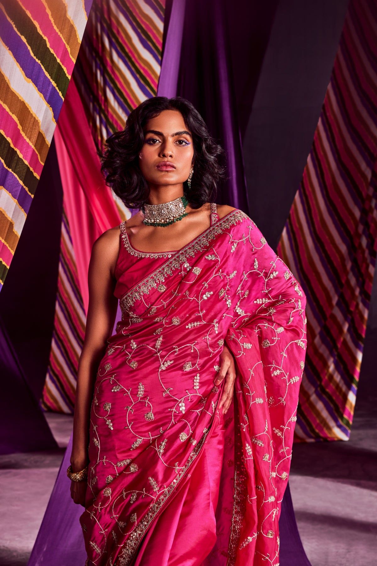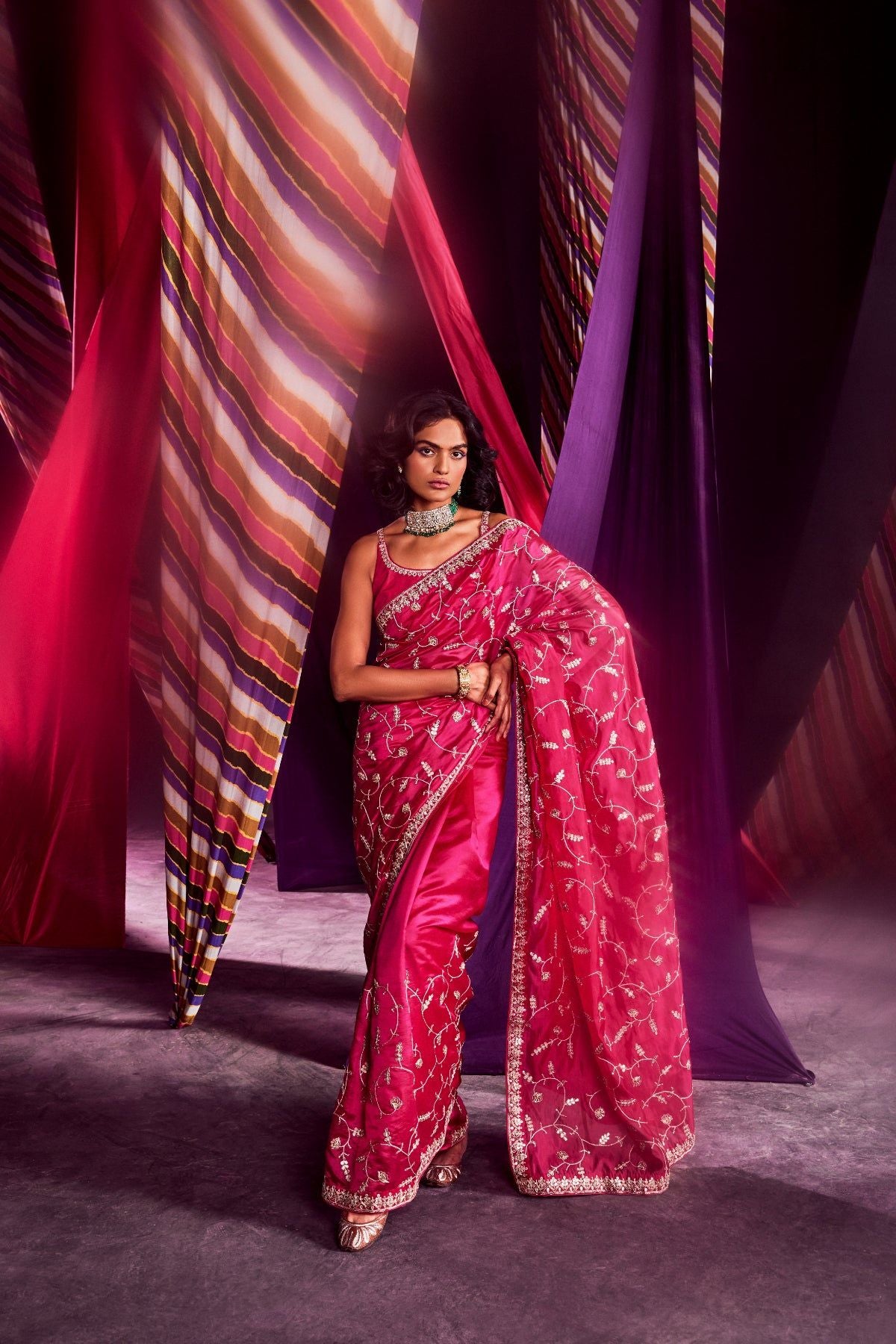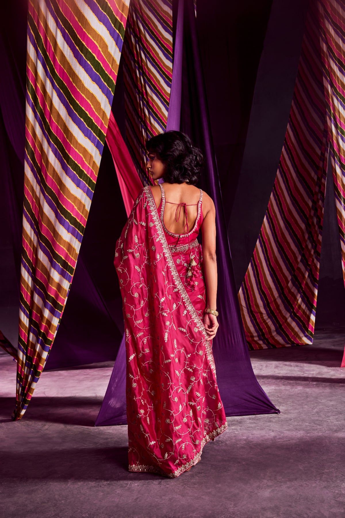 Rani Pink Gota & Marodi Work Saree Paired with Blouse