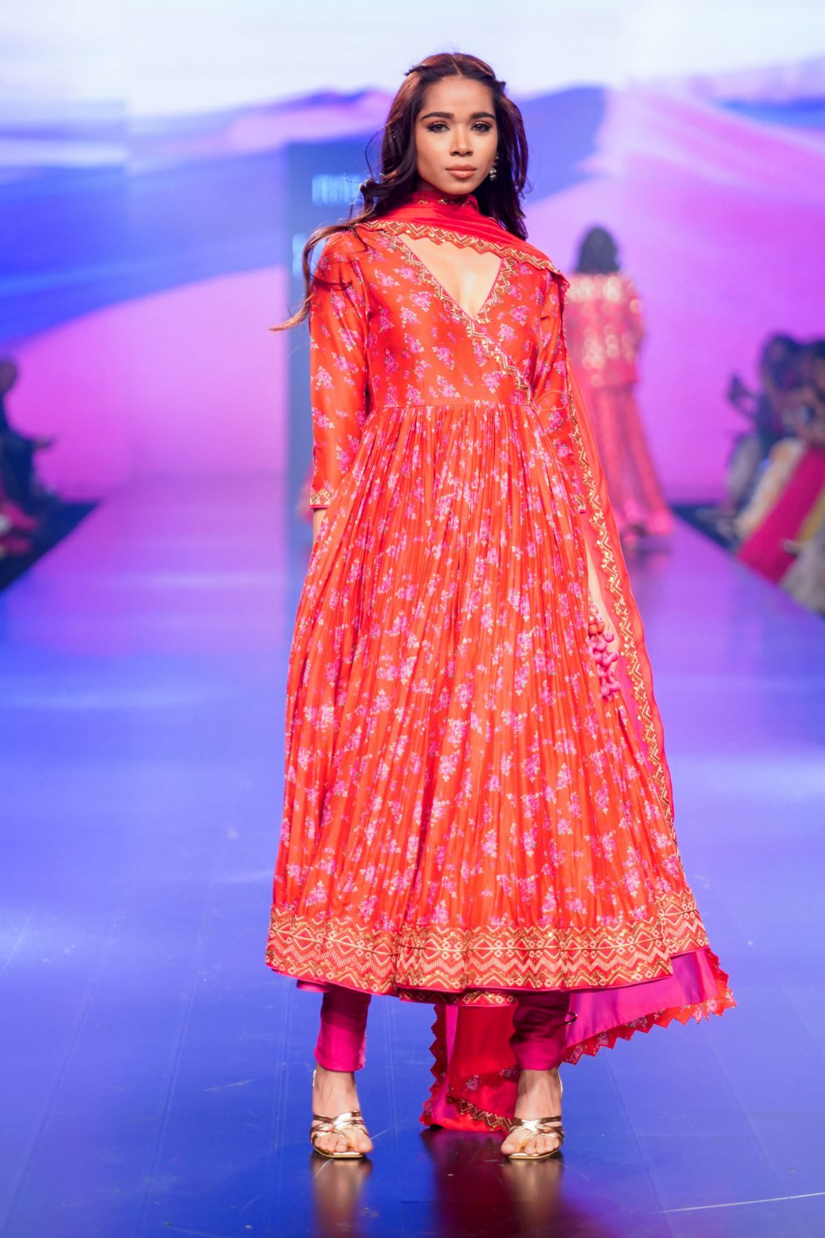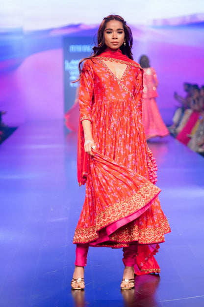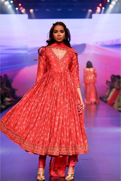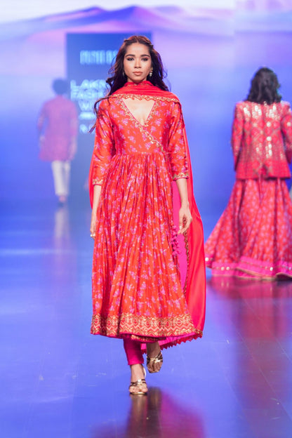 Surkh Laal Floral Anarkali Paired With Dupatta & Churidar