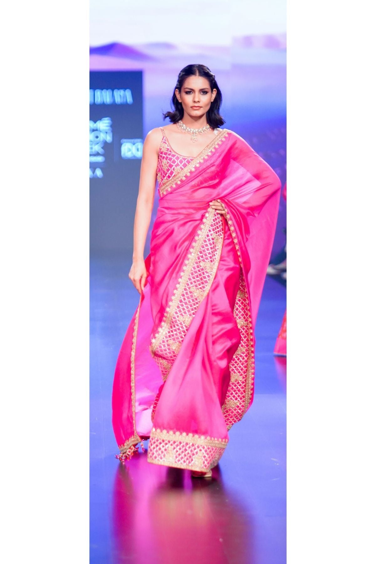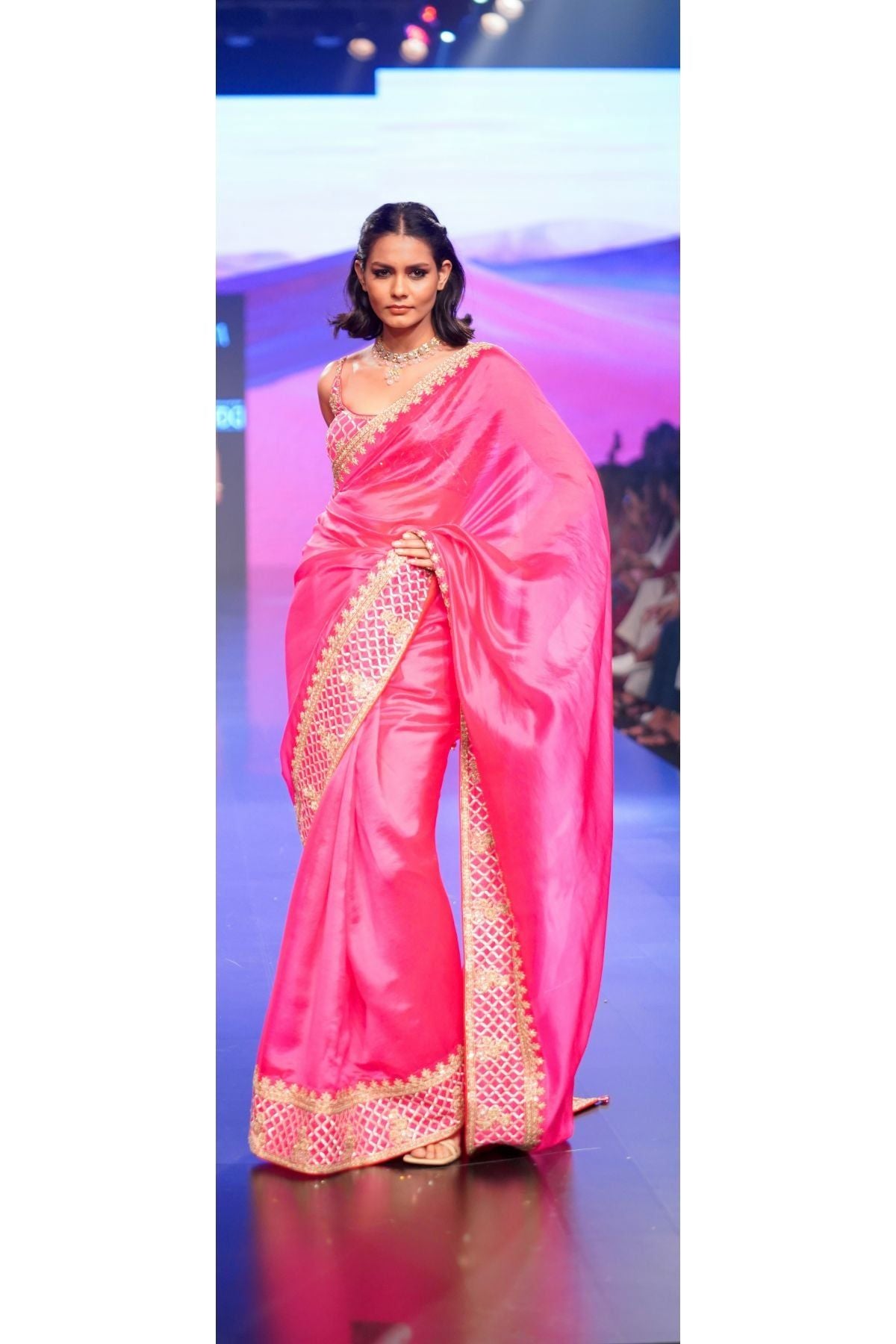 Gulaabi Gulaal Saree Embroidered With Marodi & Gota paired With Embroidered Blouse