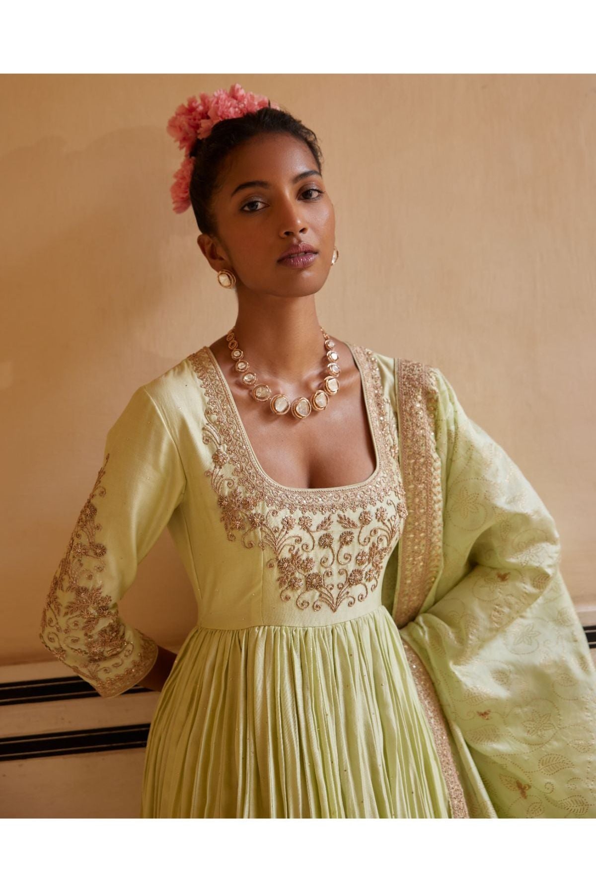 Mint Anarkali Paired With Dupatta & Churidar