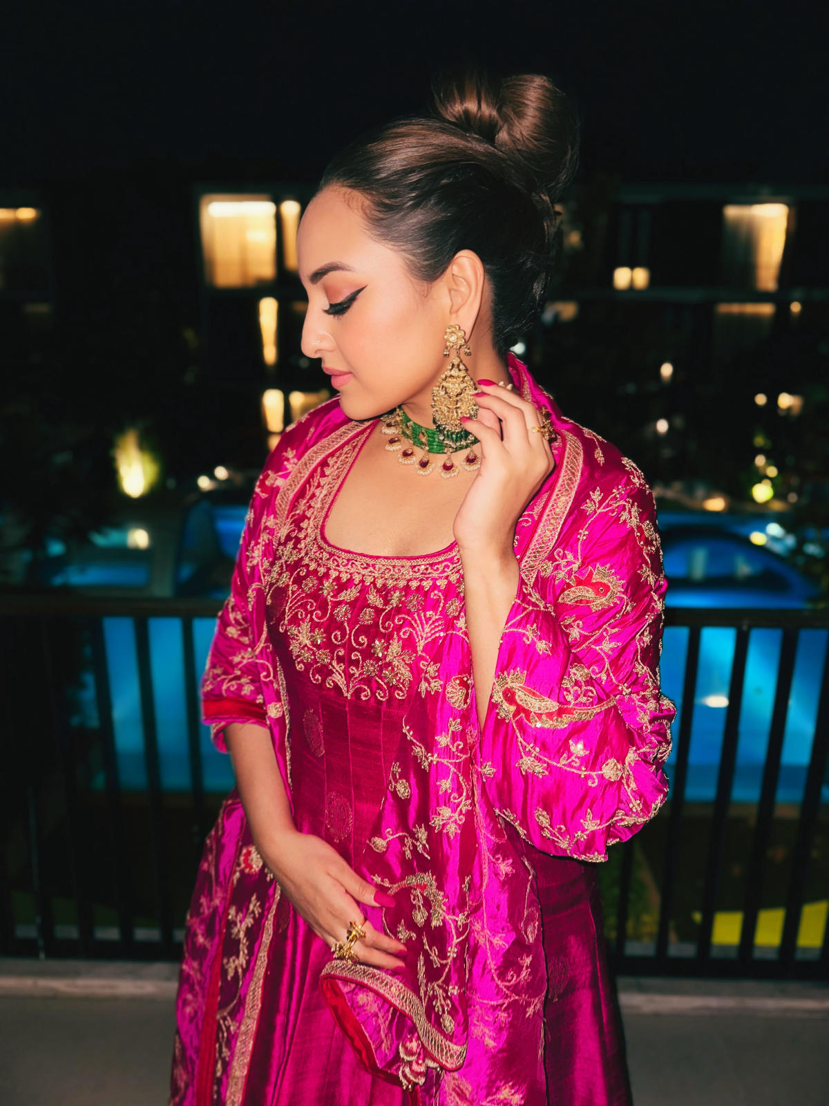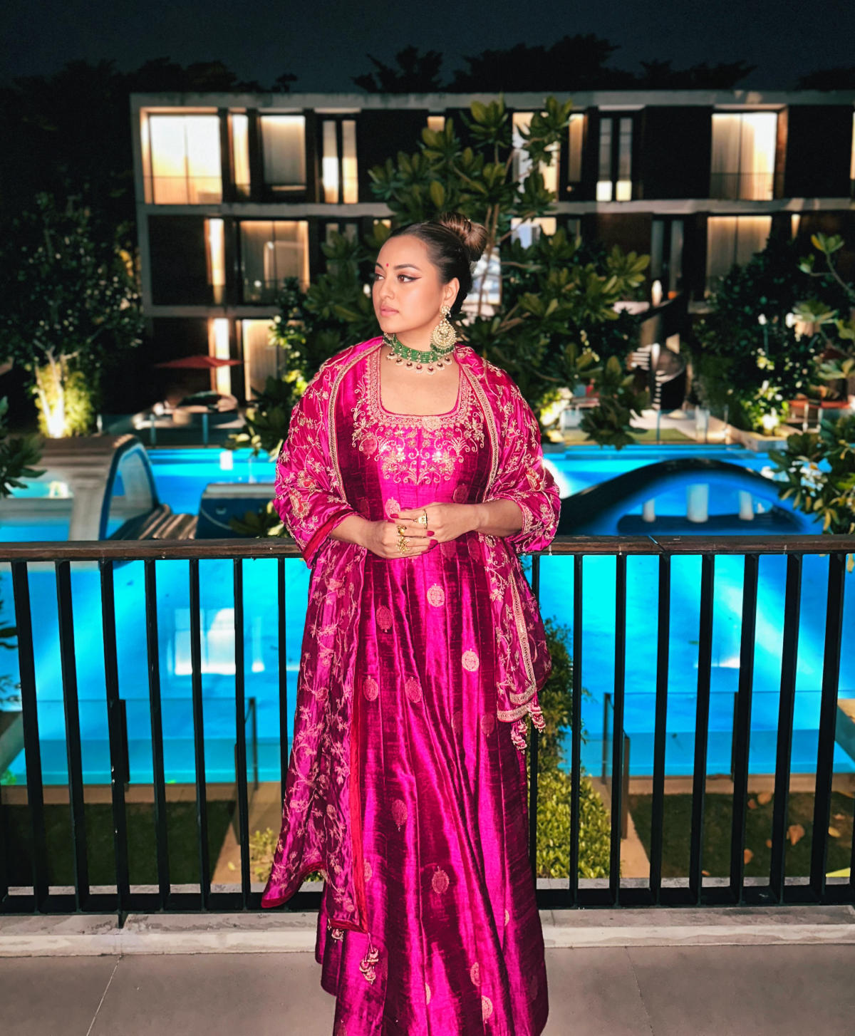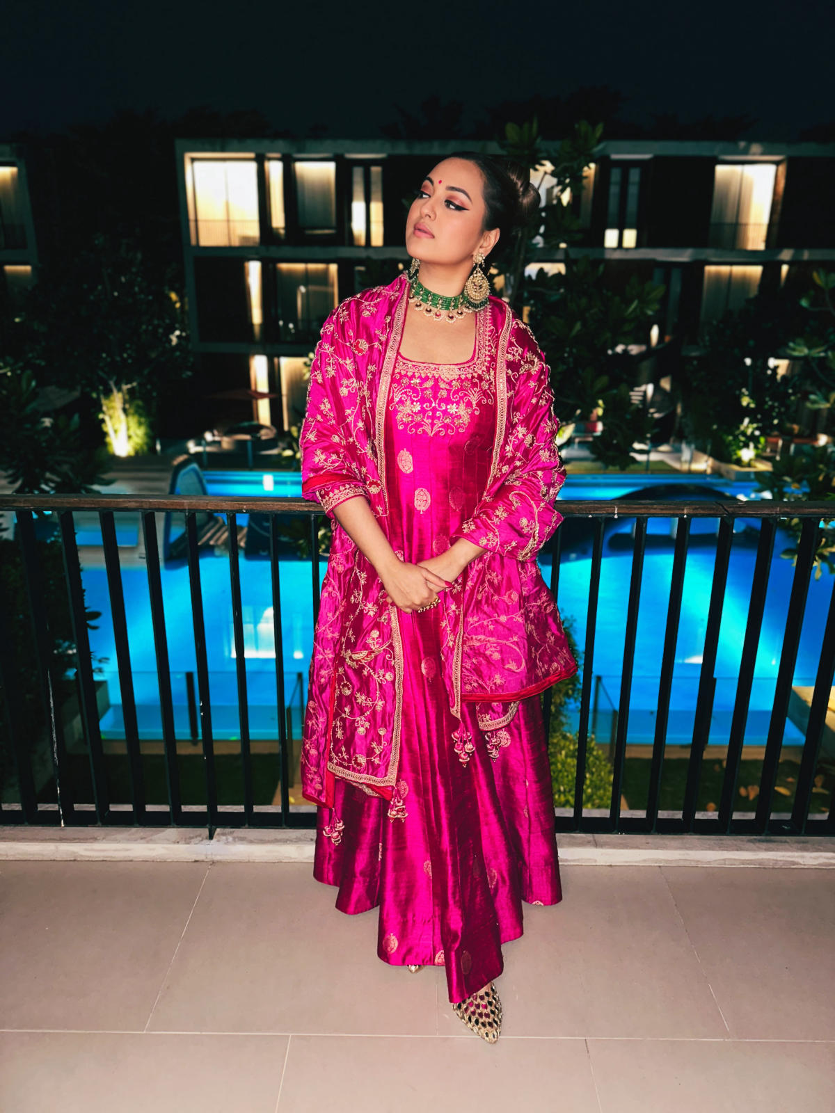 Gulabi Gulaal Banarasi Raw Silk anarkali With Classic Marodi Work Neckline Paired With Heavy Jaal Work Dupatta